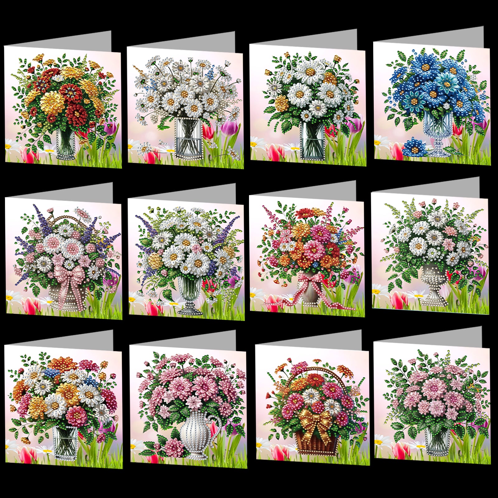 12 Packs Vase DIY Diamond Painting Greeting Card Kit for Adults Holiday Gifts