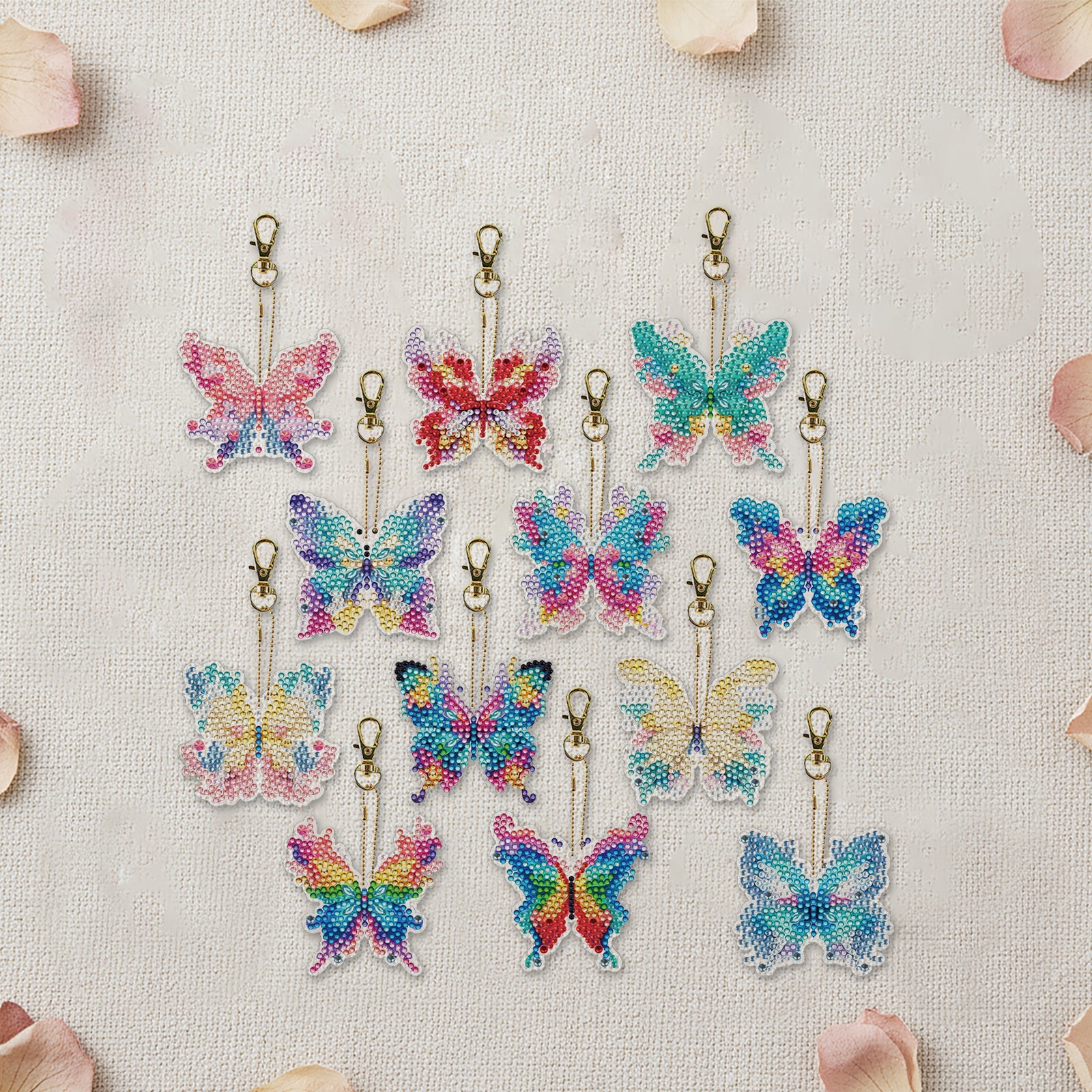 12Pcs 2D Flat DIY Diamond Painting Keychain Crystal Painting Keyring Key Storage