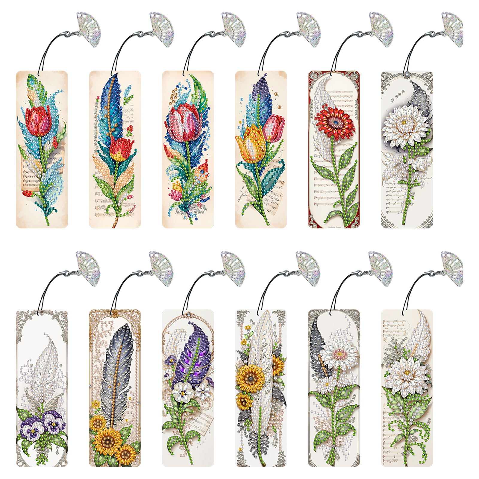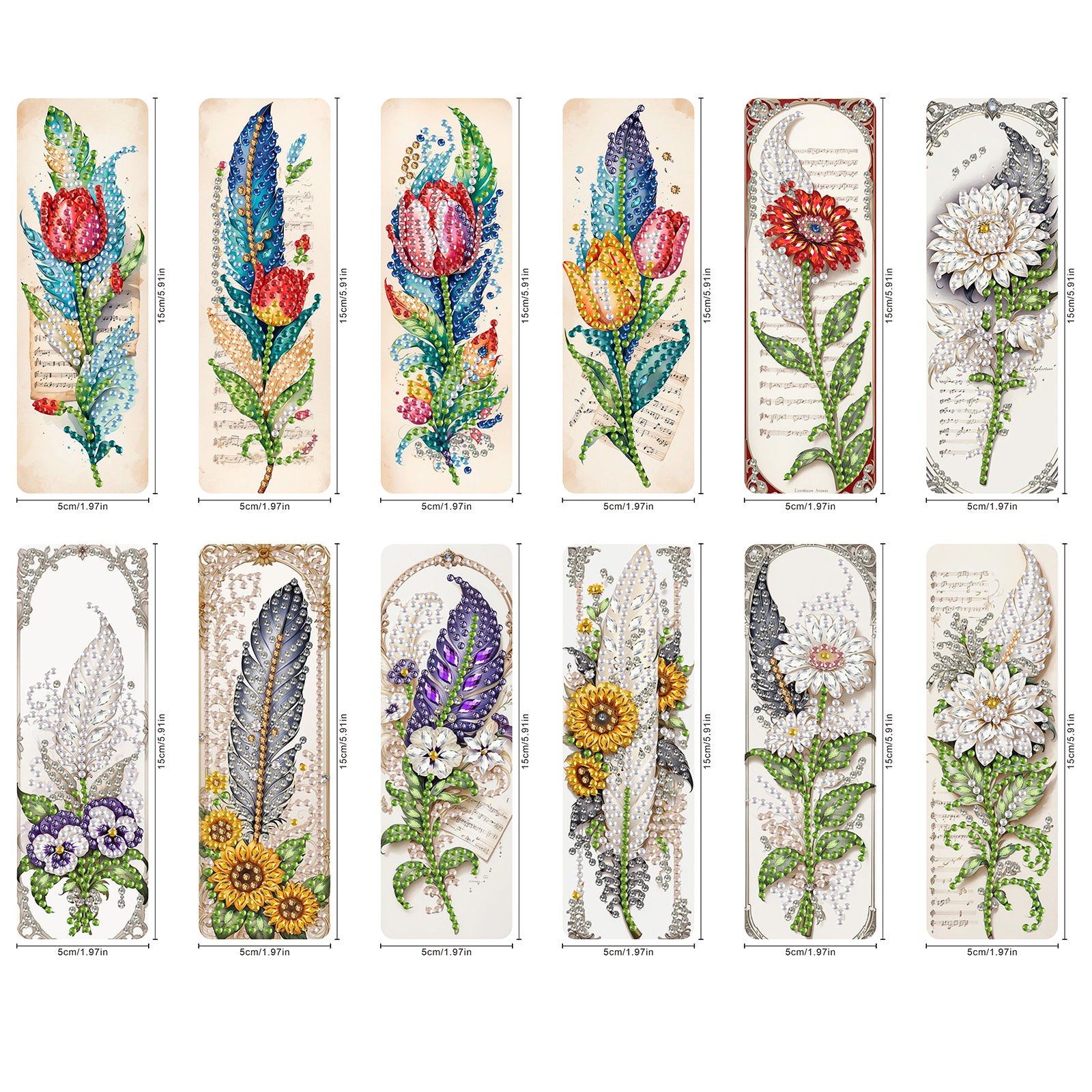 12Pcs Feathers and Flowers DIY Diamond Painting Bookmarks for Reading Enthusiast