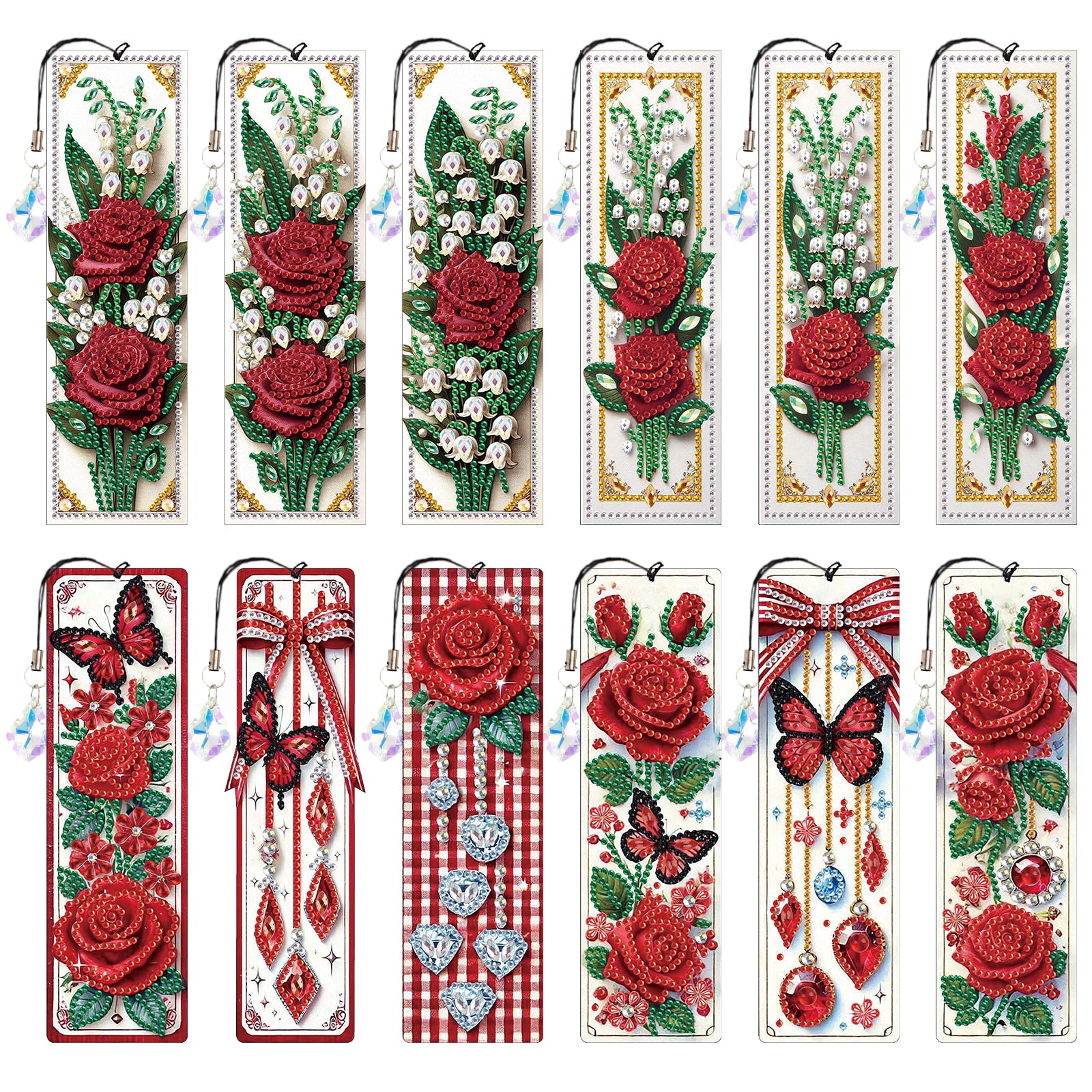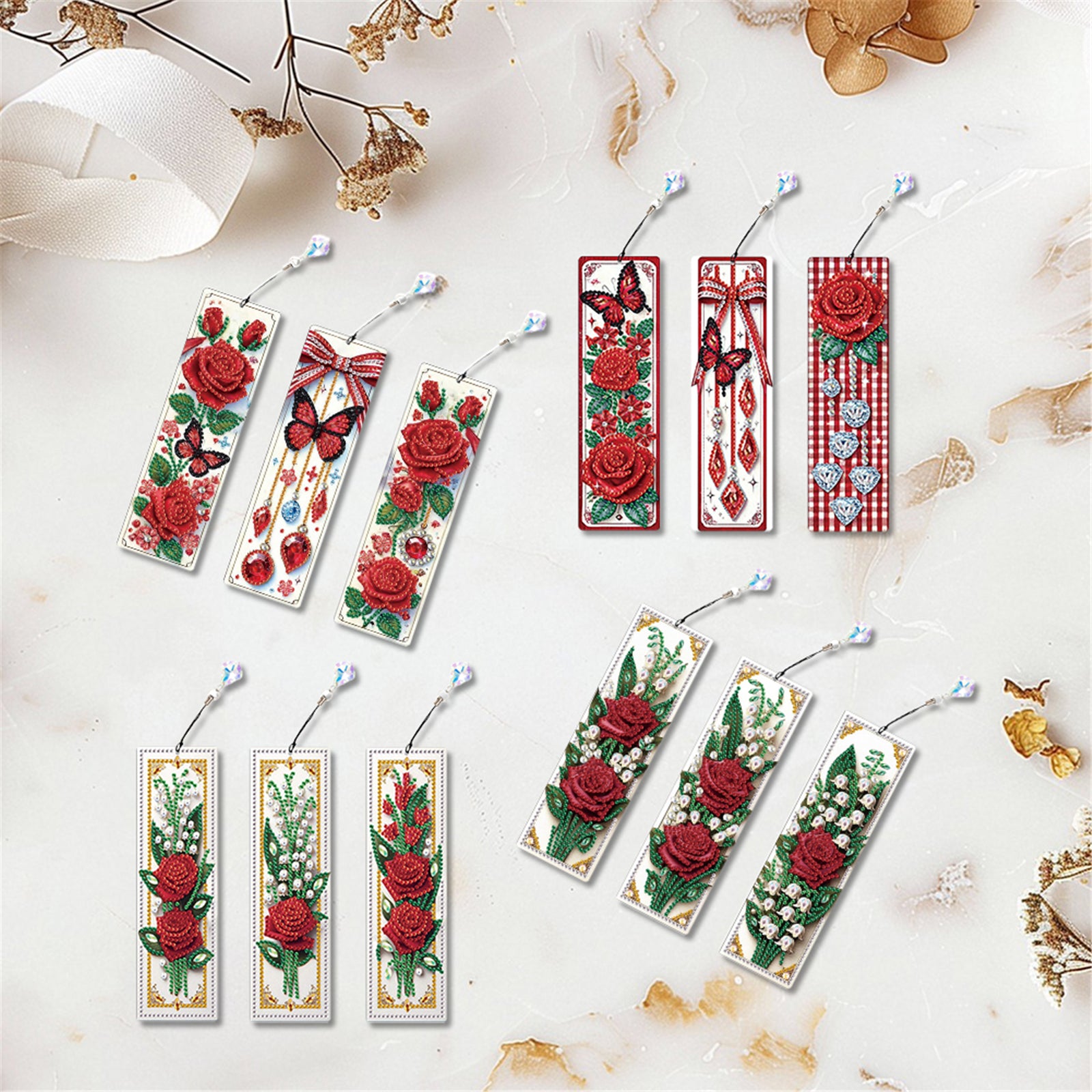 12Pcs Rose Flowers DIY Diamond Painting Bookmark for Adults Book Lovers Gifts