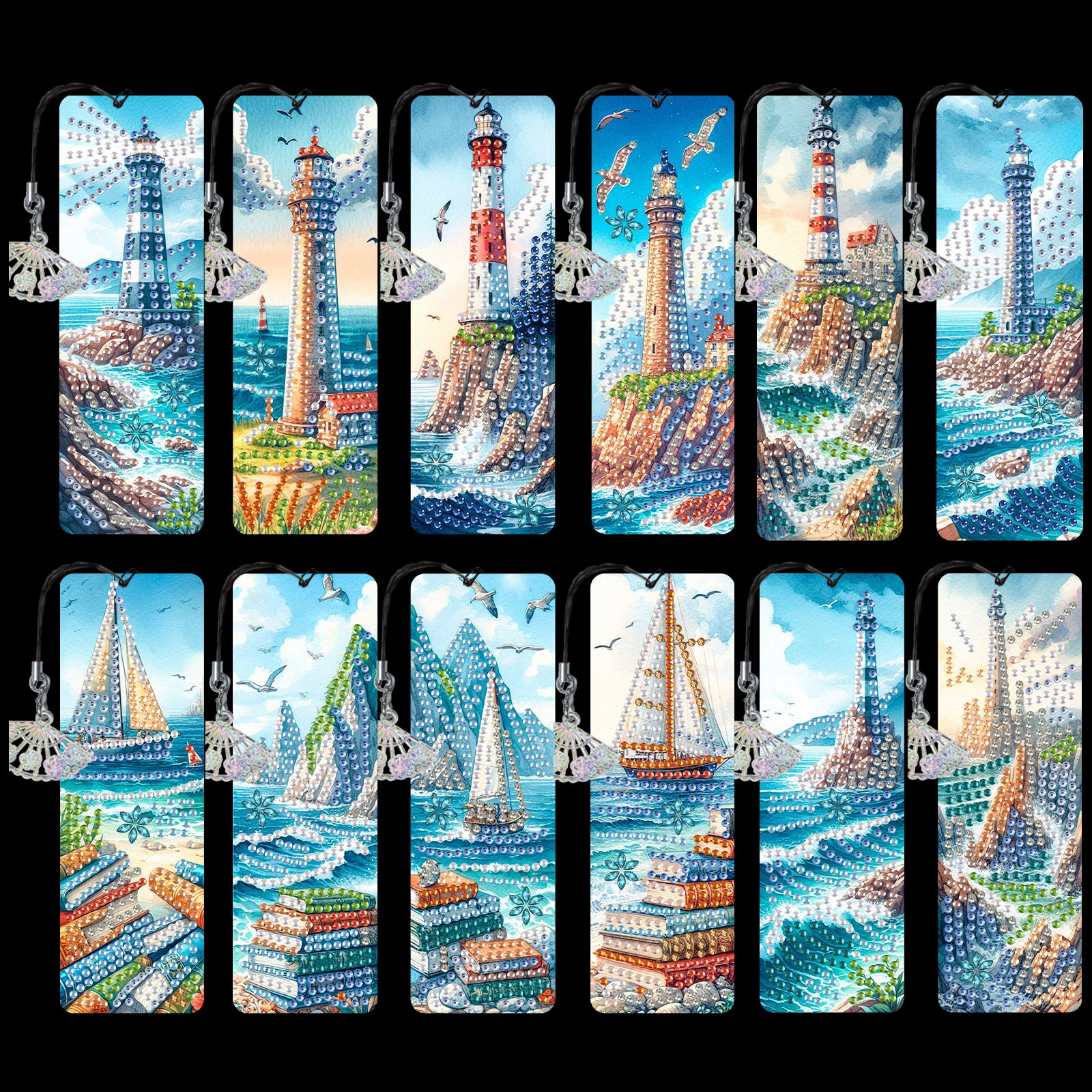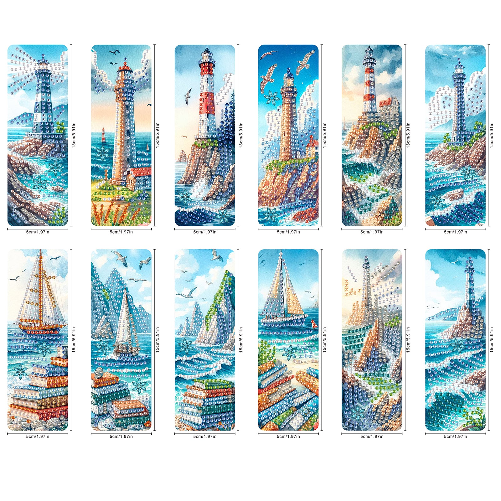 12Pcs Seaside Lighthouse DIY Diamond Painting Bookmarks for Reading Enthusiasts
