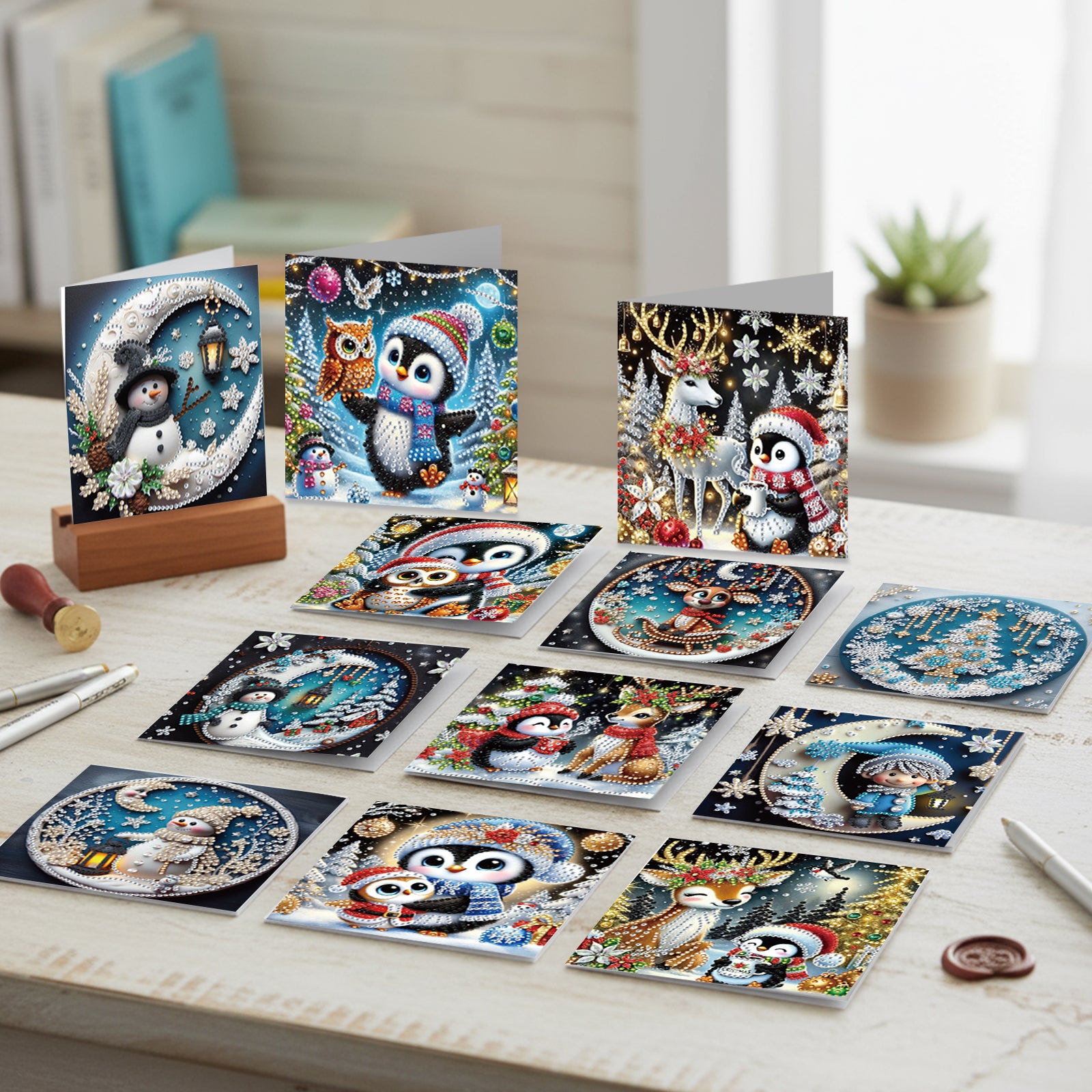 12Pcs Xmas Animal DIY Diamond Painting Greeting Cards for Adult Holiday Gifts