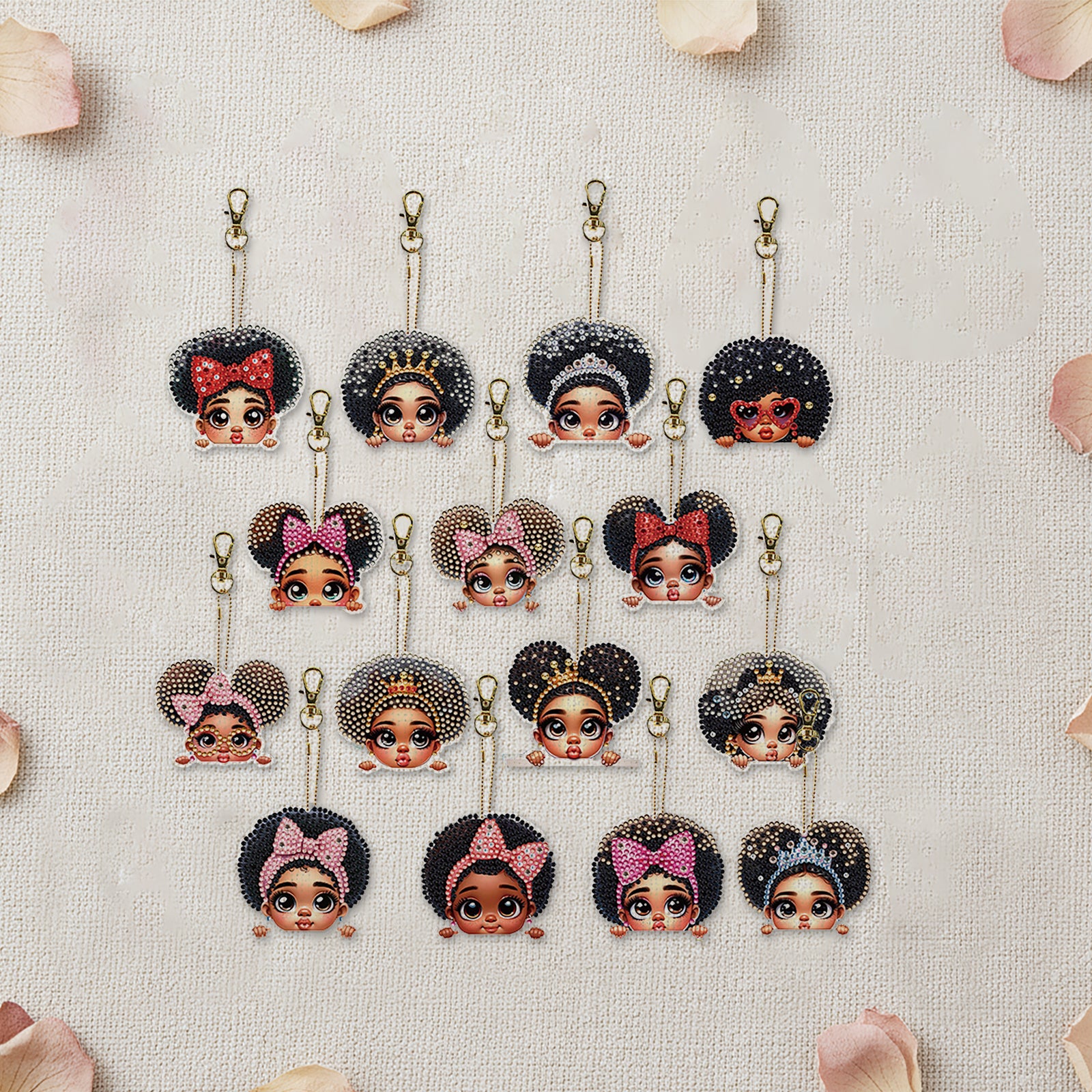 15Pcs Black Girl DiY Double-Sided Diamond Art Keychain Ornaments Party Decor