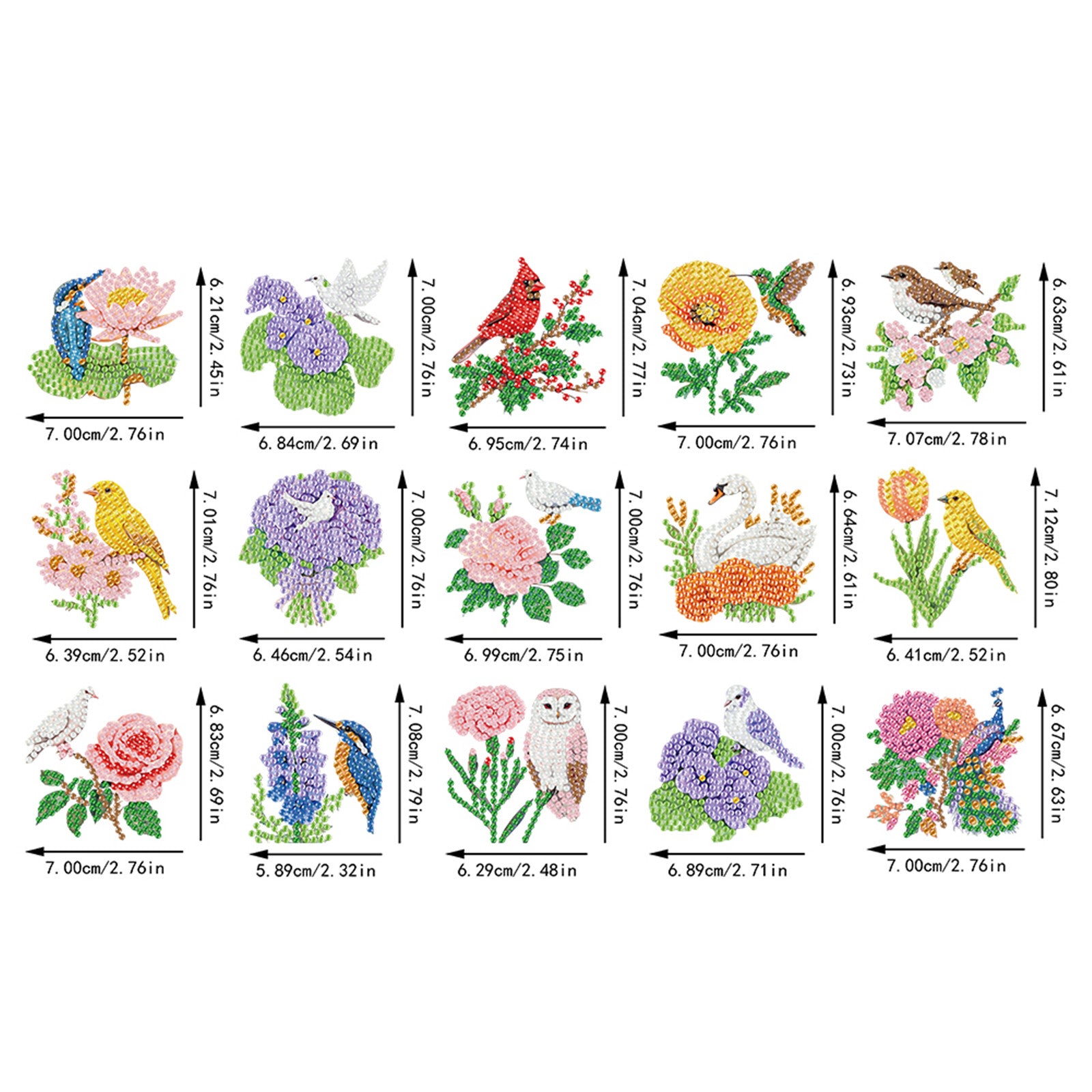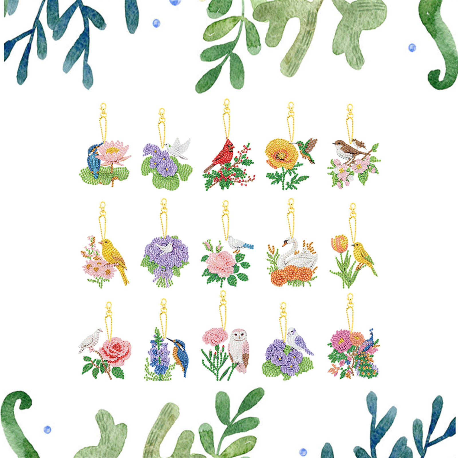 15Pcs Flowers Animals DIY Double Sided Diamond Painting Keychain Kits for Adults