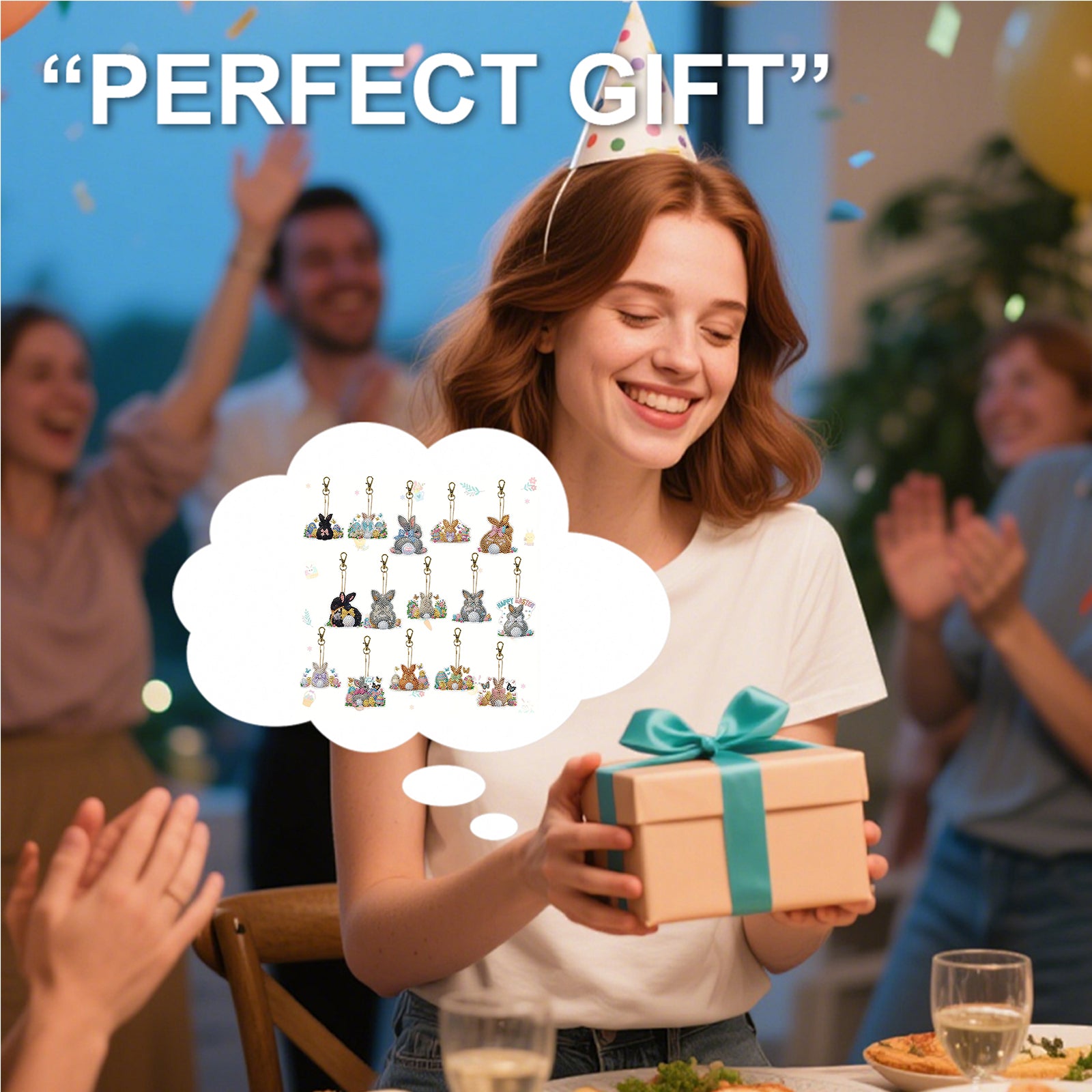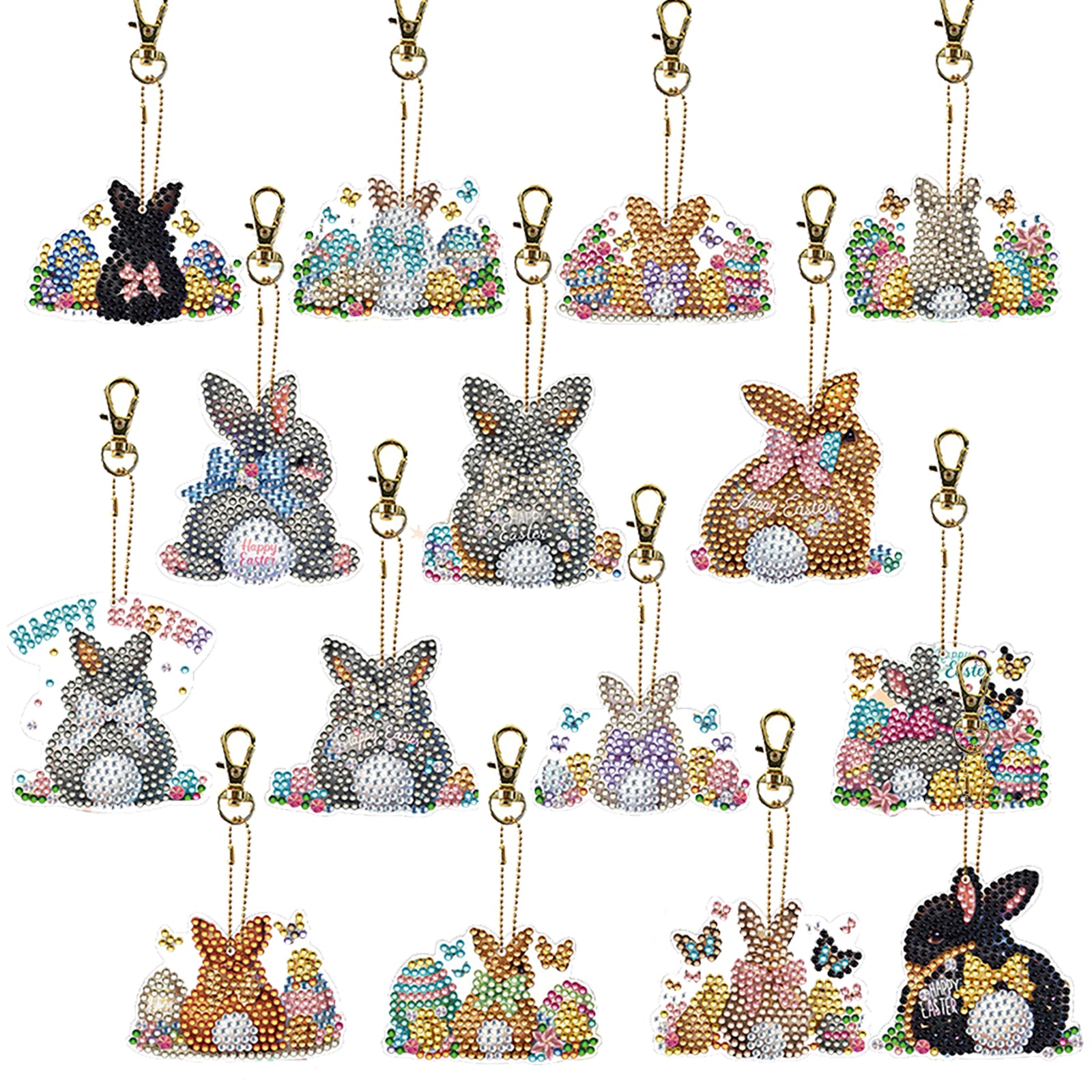15Pcs Rabbit DiY Double-Sided Diamond Art Keychain Ornaments Party Crafts Decor