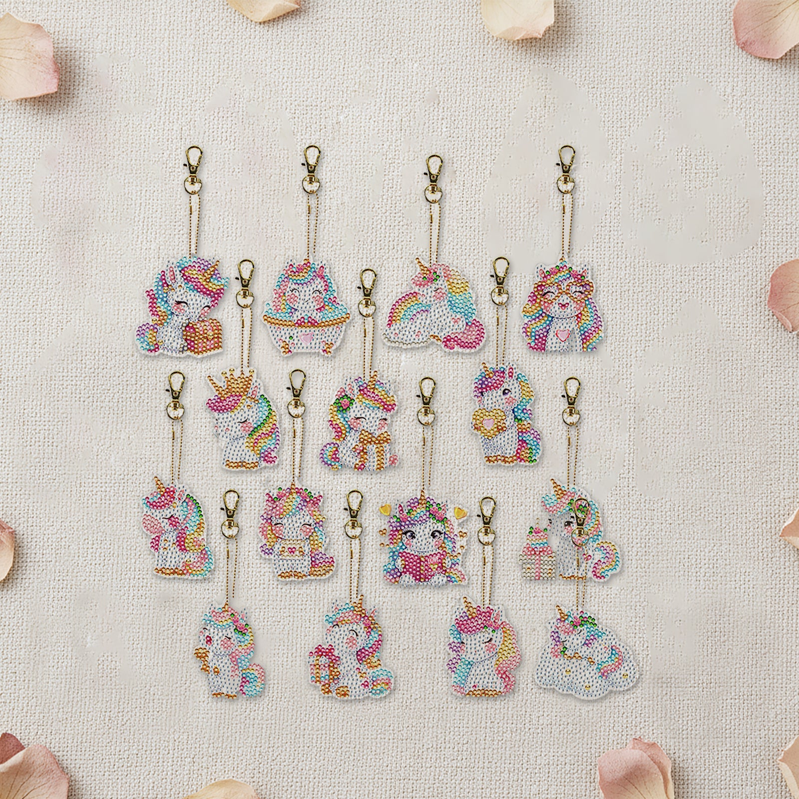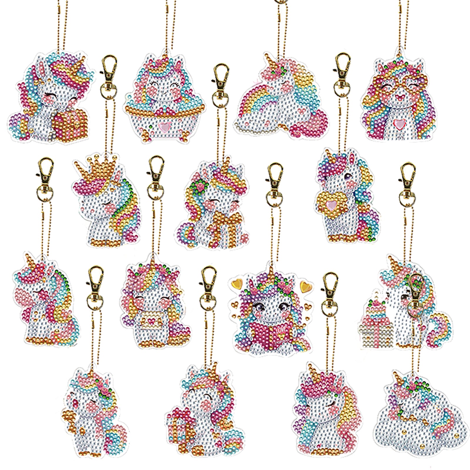 15Pcs Unicorn DiY Double-Sided Diamond Art Keychain Ornaments Party Crafts Decor