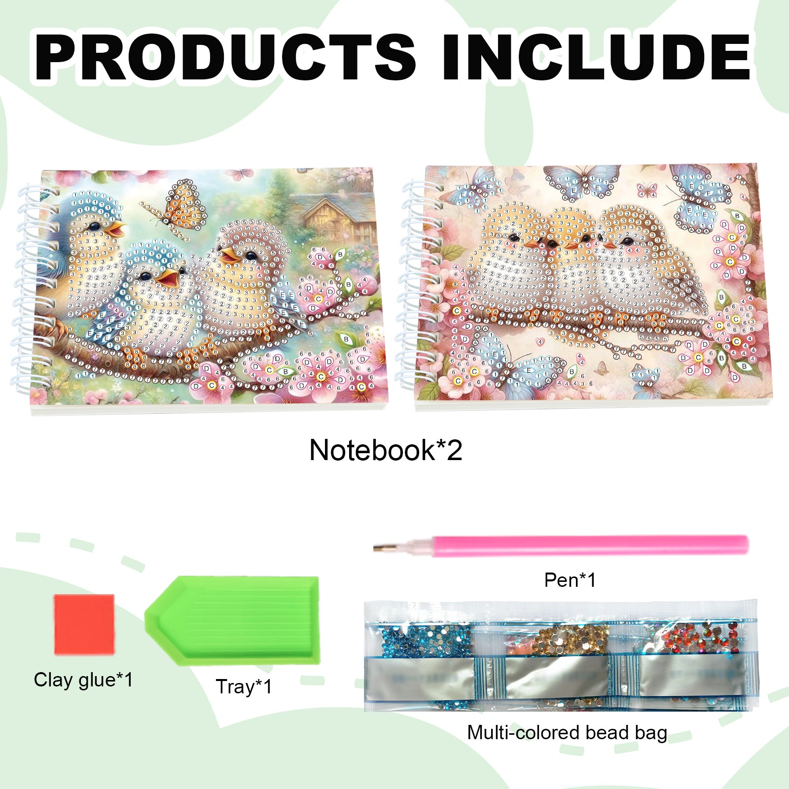 2 Pack Bluebird DIY Diamond Art Spiral Notebook Kit 80Pages No Lines for Adults