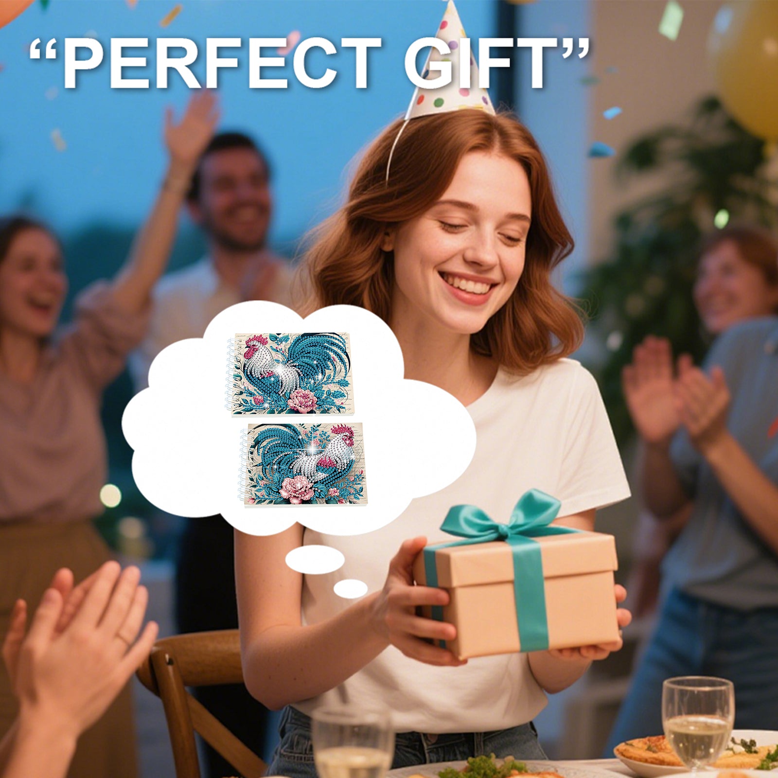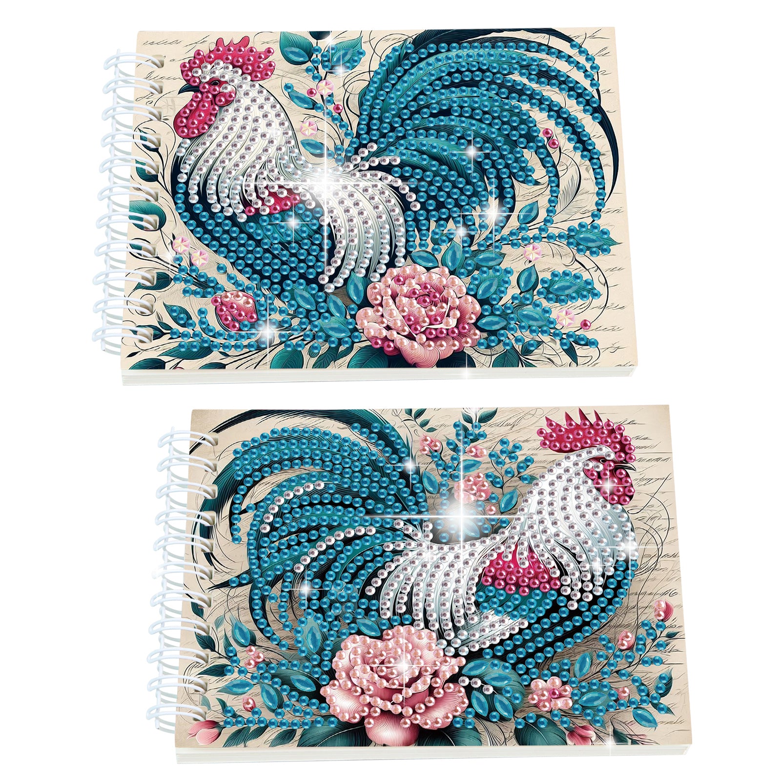 2 Pack Rooster DIY Diamond Art Spiral Notebook Kit 80Pages No Lines for Adults