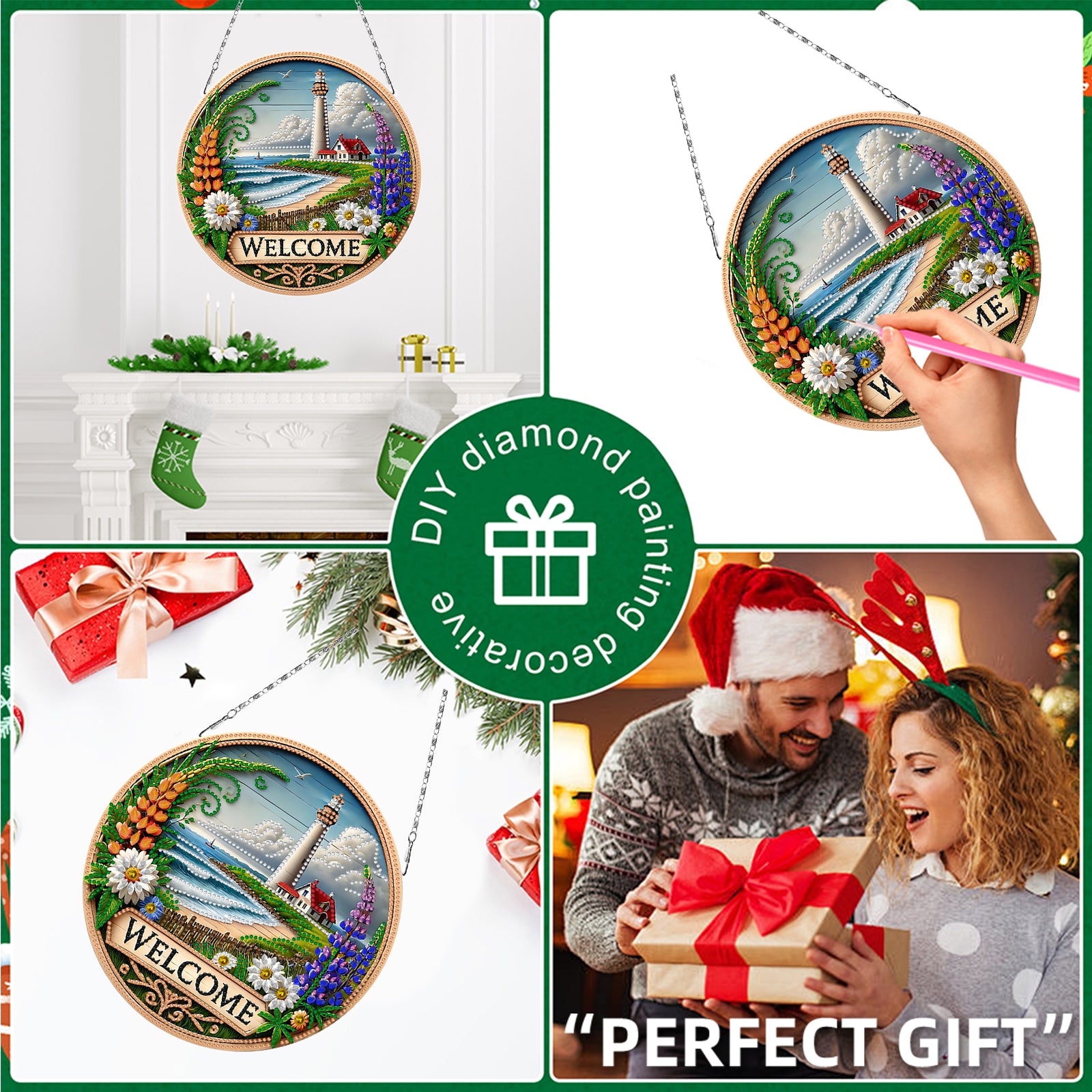 2D Flat DIY Lighthouse Diamond Art Pendant Double-Sided Diamond Painting Set