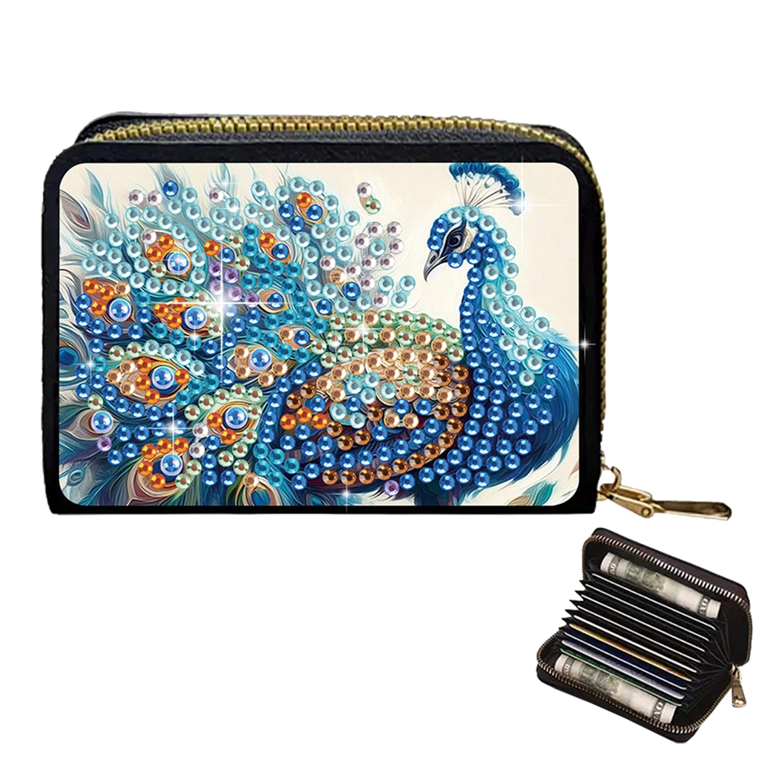 2pcs Peacock Pattern Diamond Painting Fashion Card Holder Compact Coin Purse