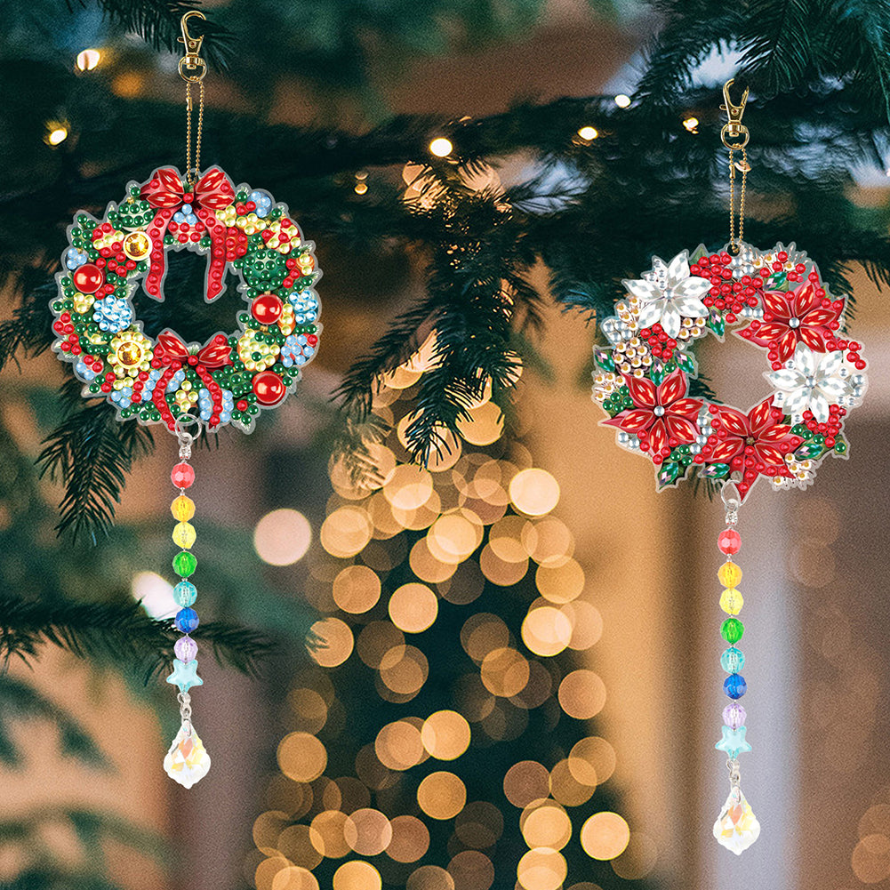 2PCS Suncatcher Diamond Painting Hanging Decor for Kid DIY Craft (Wreath #3)