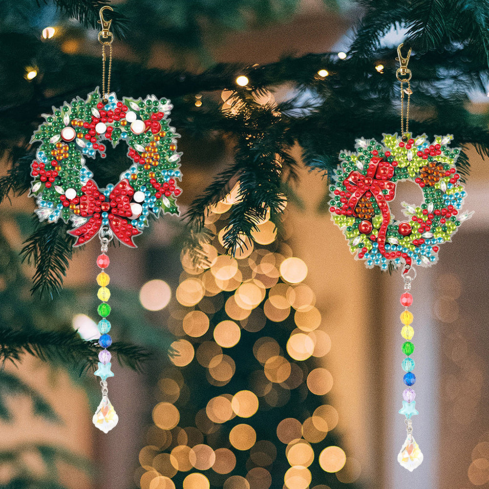 2PCS Suncatcher Diamond Painting Hanging Decor for Kid DIY Craft (Wreath #6)