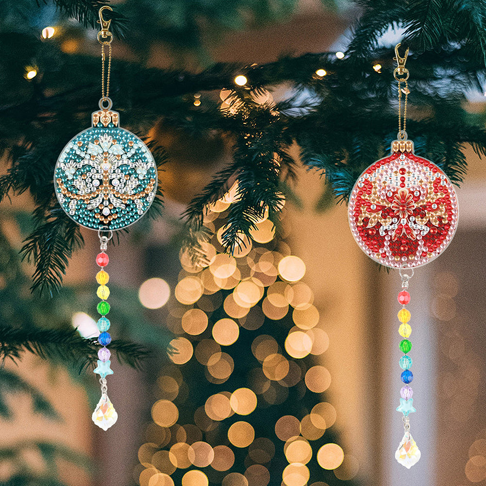 2PCS Suncatcher Diamond Painting Hanging Decor for Kid DIY Craft (Xmas Ball #9)