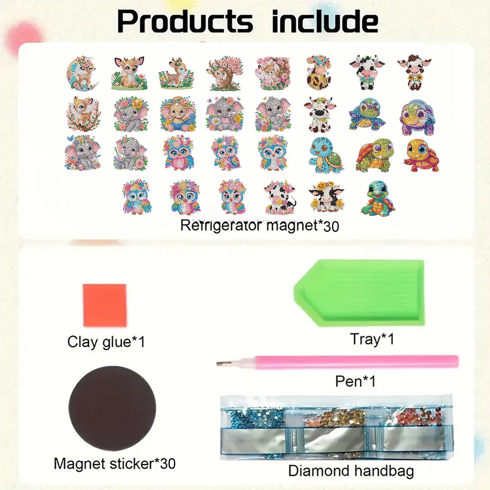 30Pcs Cute Animal Diamond Art Magnets Refrigerator for Adults DIY Home Decor