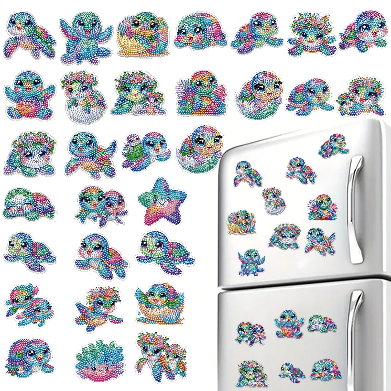30Pcs Turtle 2D Acrylic DIY Diamond Painting Magnets Special-Shaped Diamond Home