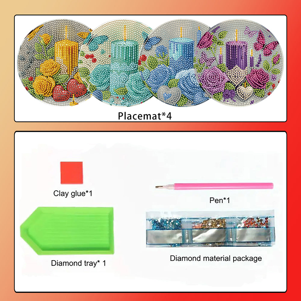 4 PCS Christmas Candle Diamond Painting Placemat Kit for Home Kitchen Parties