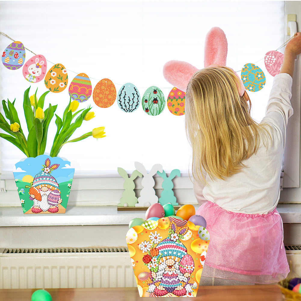 4 Pcs Diamond Painting Easter Party Decoration Boxes (12pcs Easter Pendant)
