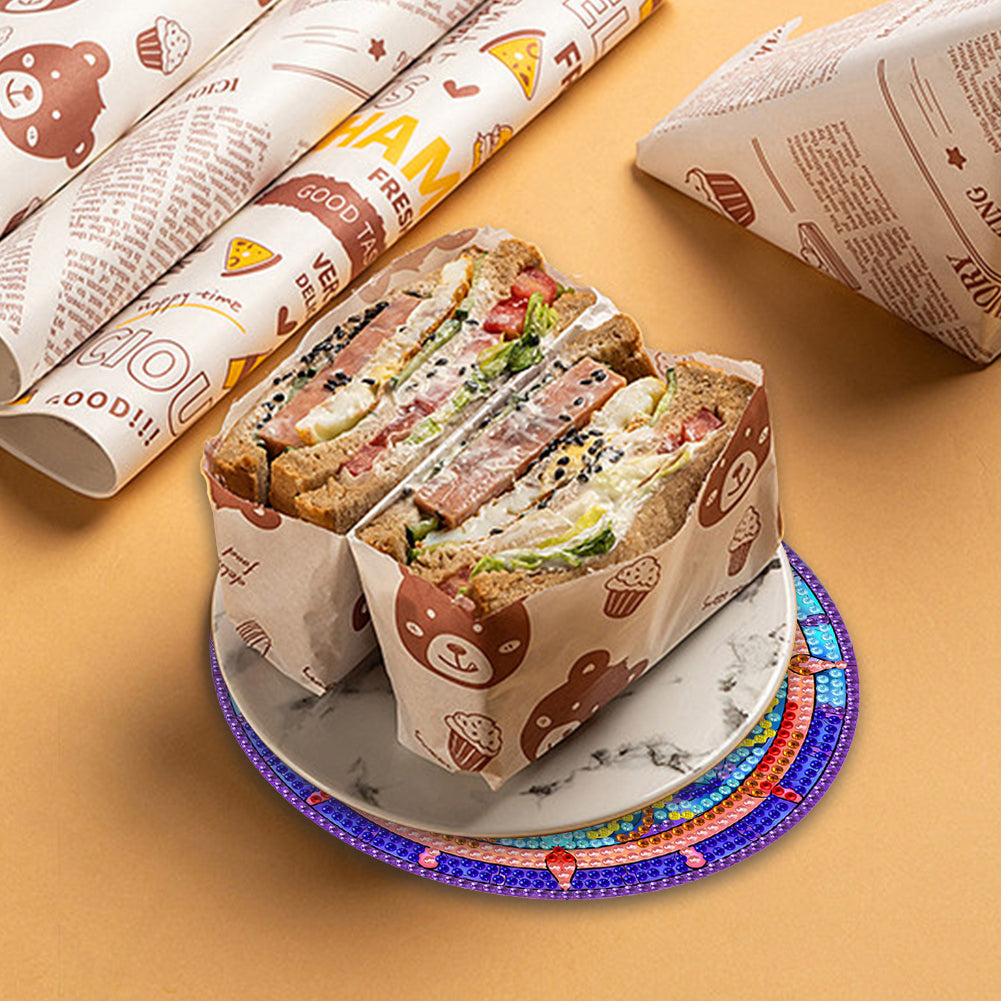 4 PCS Wooden Diamond Painted Placemats Round Placemat with Holder (Mandala)
