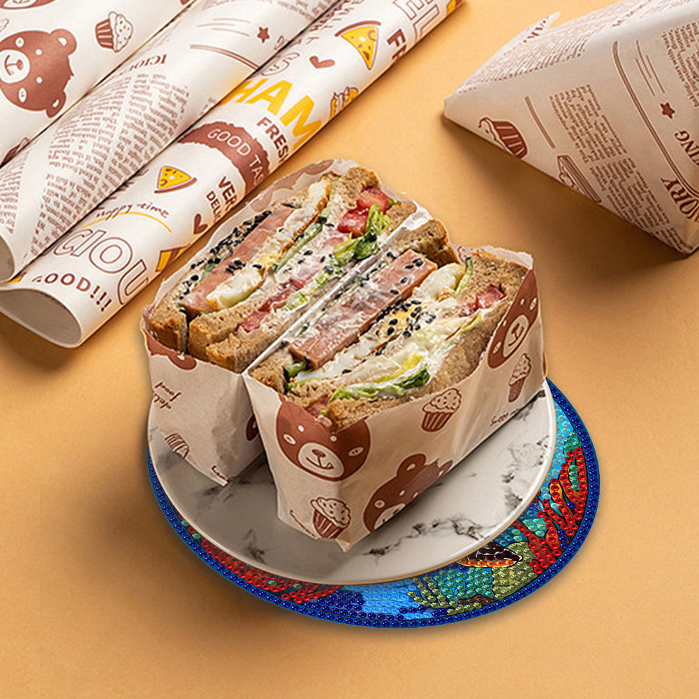 4 PCS Wooden Diamond Painted Placemats Round Placemat with Holder (Sea Turtle)
