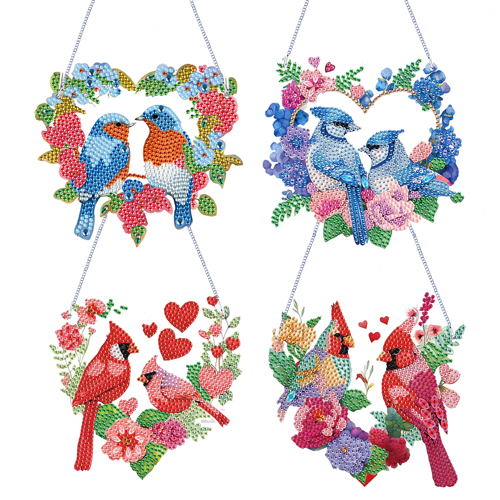 4Pcs Bluebird Cardinal 2D Flat DIY Diamond Painting Kit Home Crystal Art Pendant