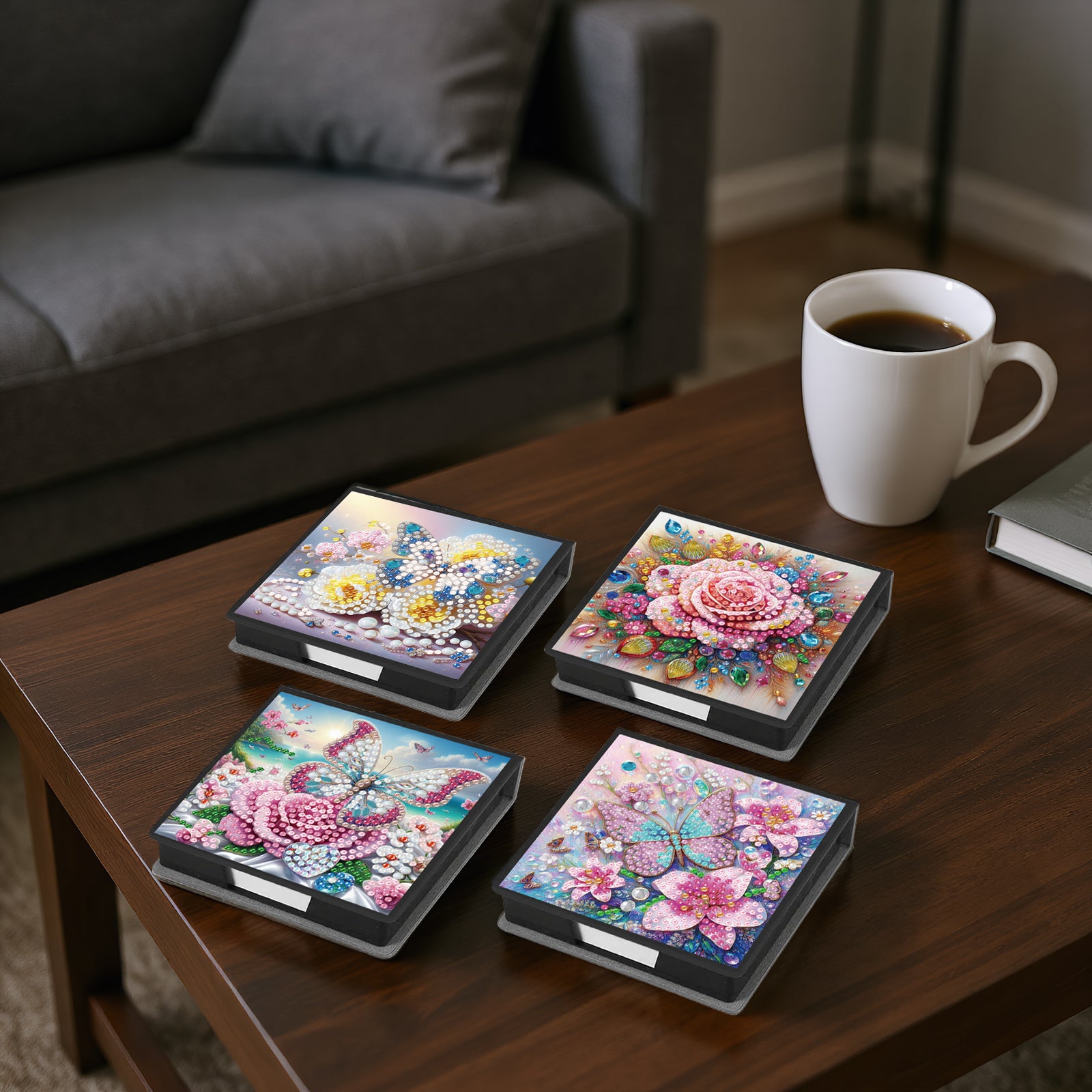 4Pcs Butterfly 5D DIY PU Diamond Painting Kit Note Box with 160 Sheets Paper