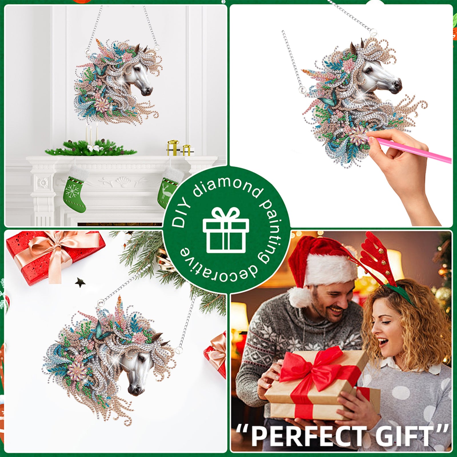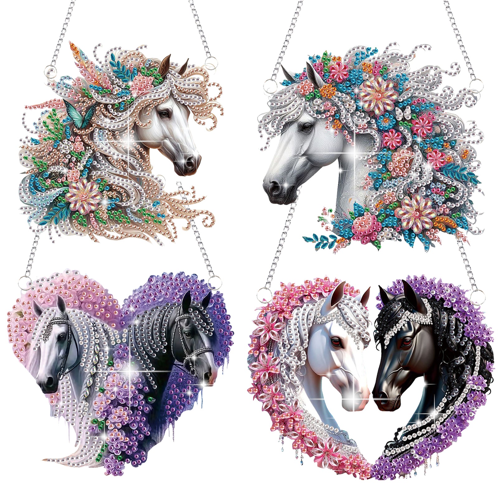 4pcs Flower Horse DIY 2D Flat Special Shaped Diamond Painting Kits Pendant Gifts