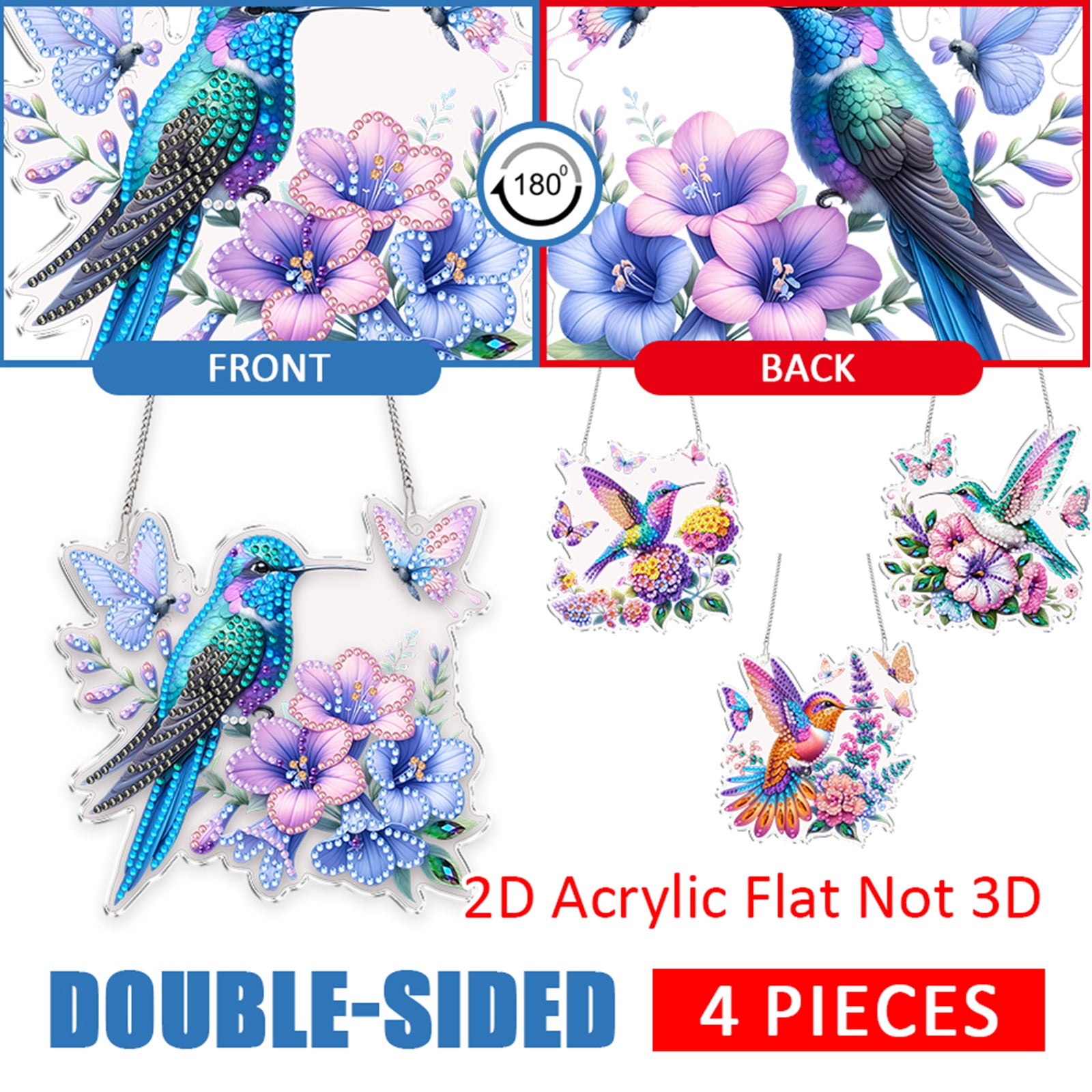 4Pcs Flower Hummingbird 2D Flat DIY Special Shape Hanging Diamond Art Kits