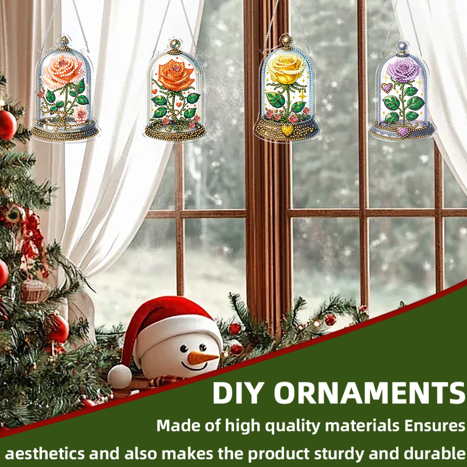 4pcs Glass Rose DIY 2D Flat Acrylic Diamond Painting Kits Diamond Art Pendant