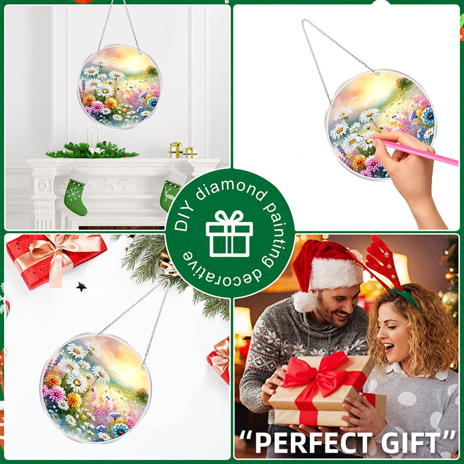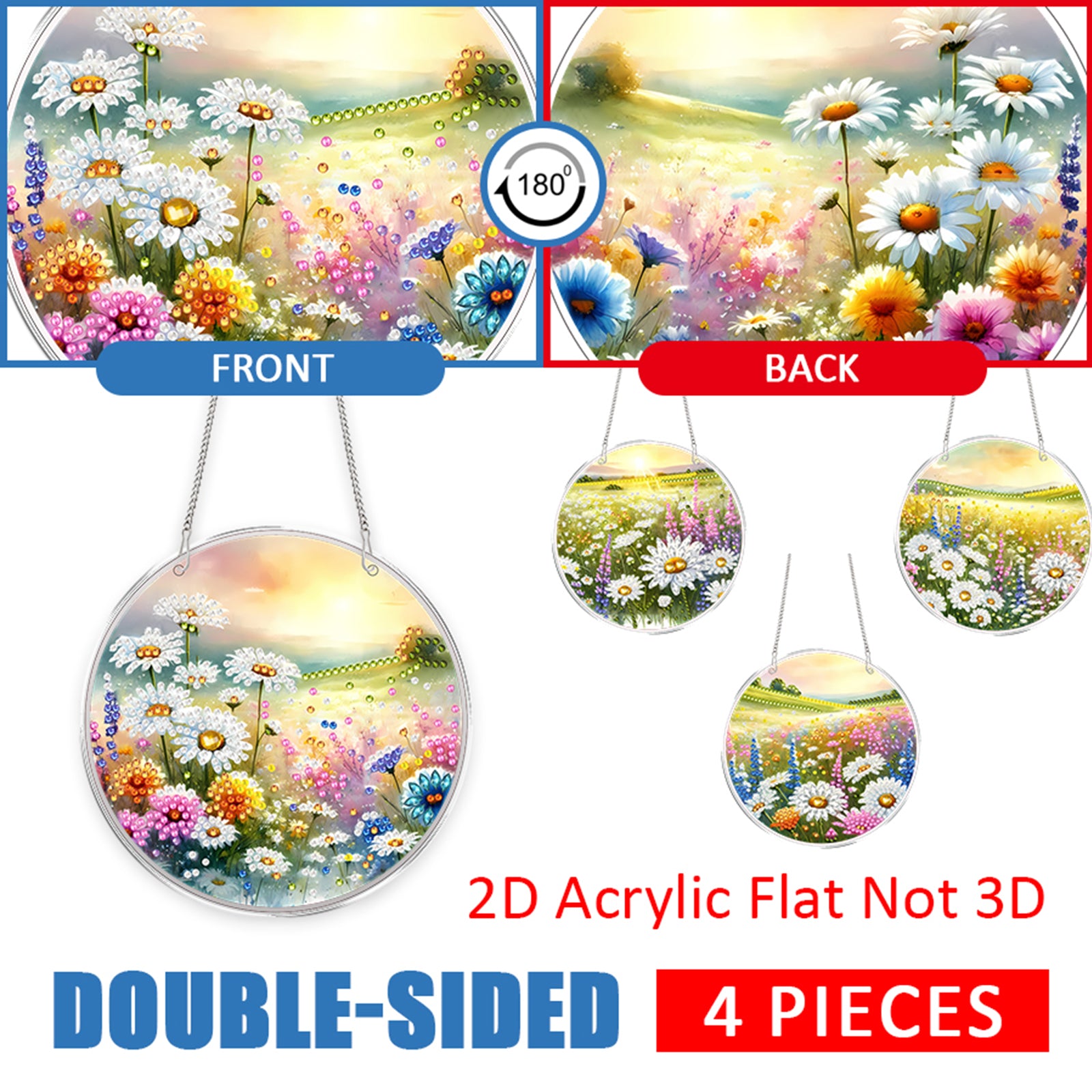 4pcs Outdoor Grass DIY 2D Flat Acrylic Diamond Painting Kits Diamond Art Pendant