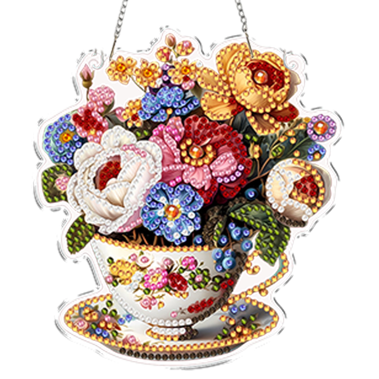 4pcs Vase 2 DIY 2D Flat Acrylic Diamond Painting Kits Diamond Art Pendant