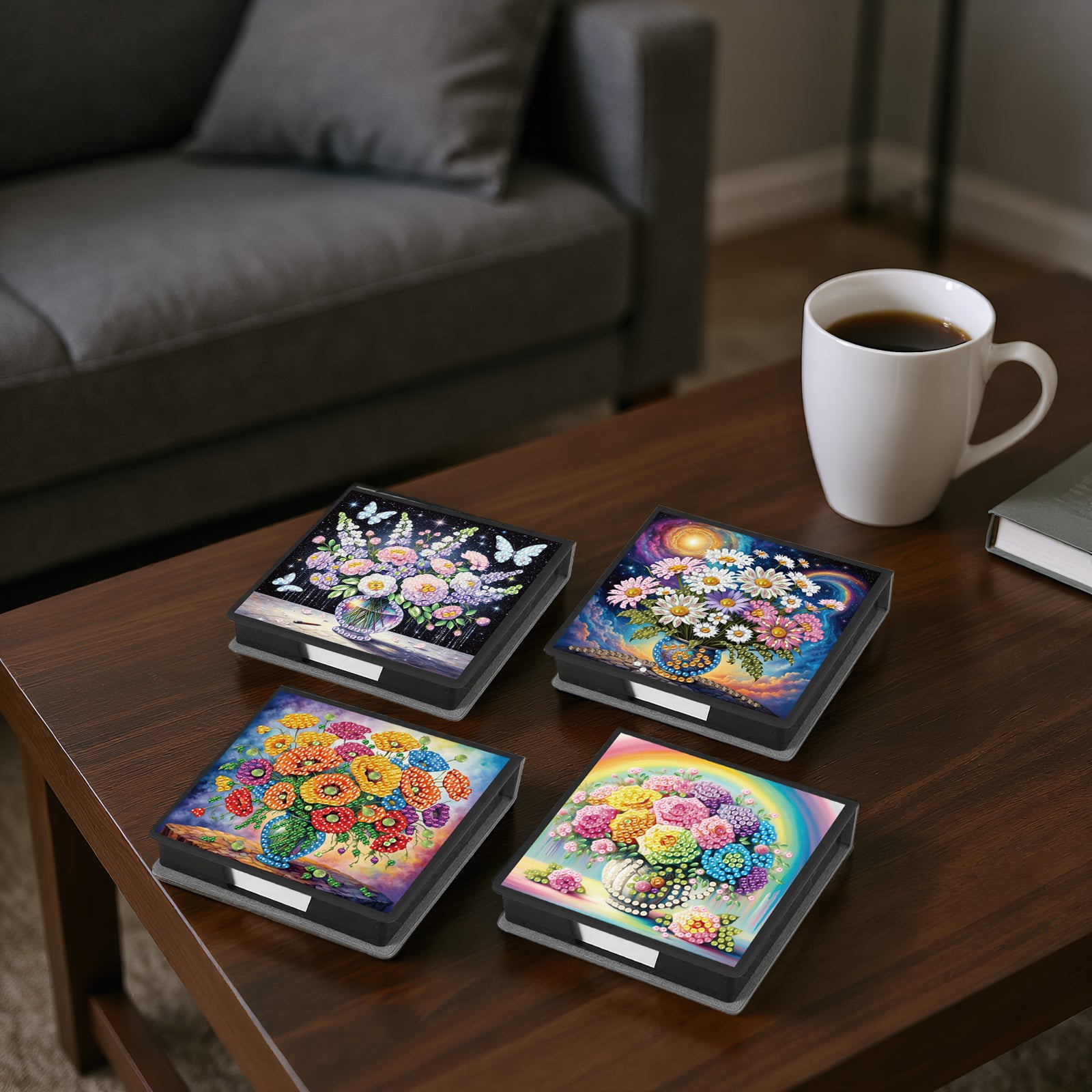 4Pcs Vase 5D DIY PU Diamond Painting Kit Office Note Box with 640 Sheets Paper