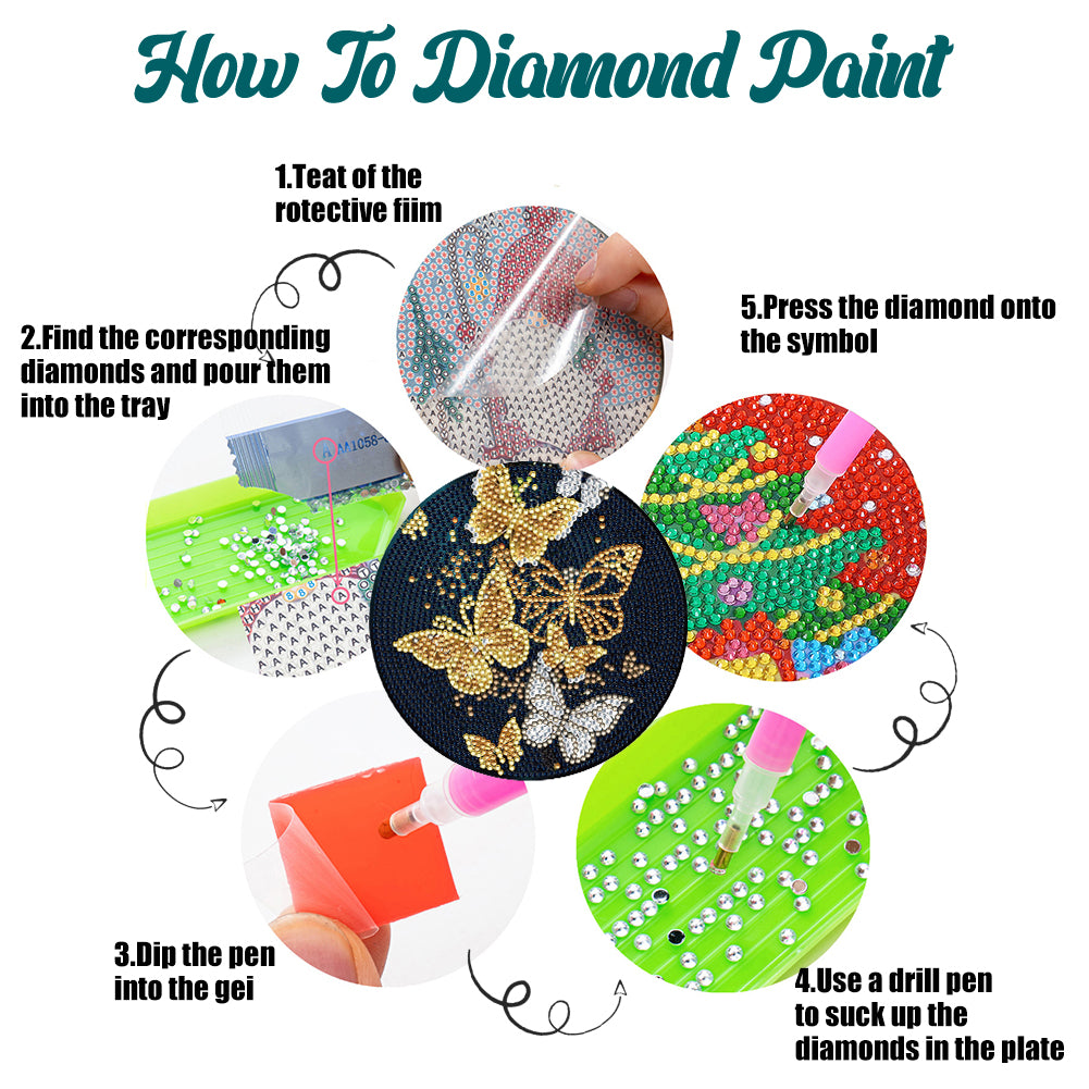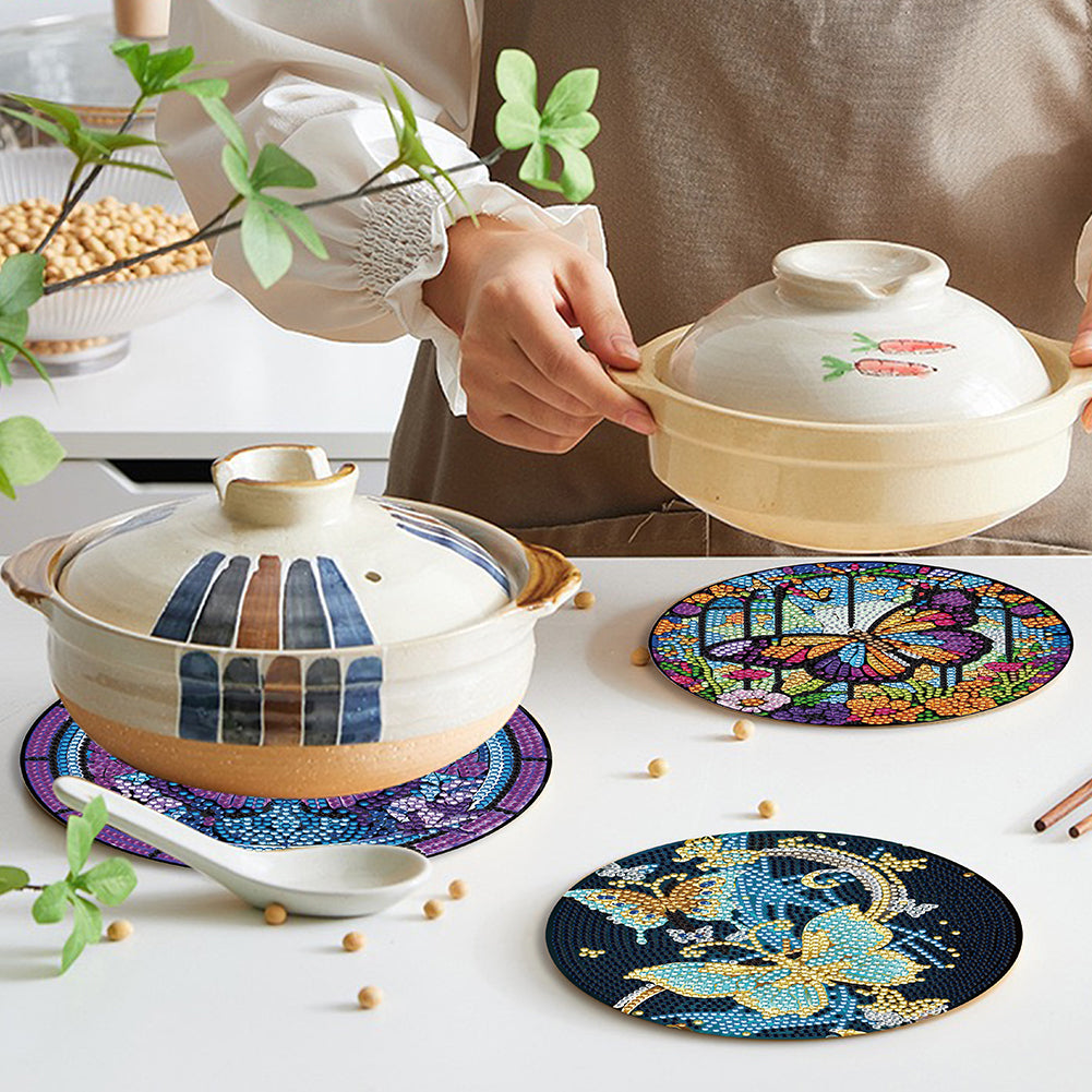 4PCS Wooden Diamond Painted Placemats for Dining Table Decor(Graceful Butterfly)