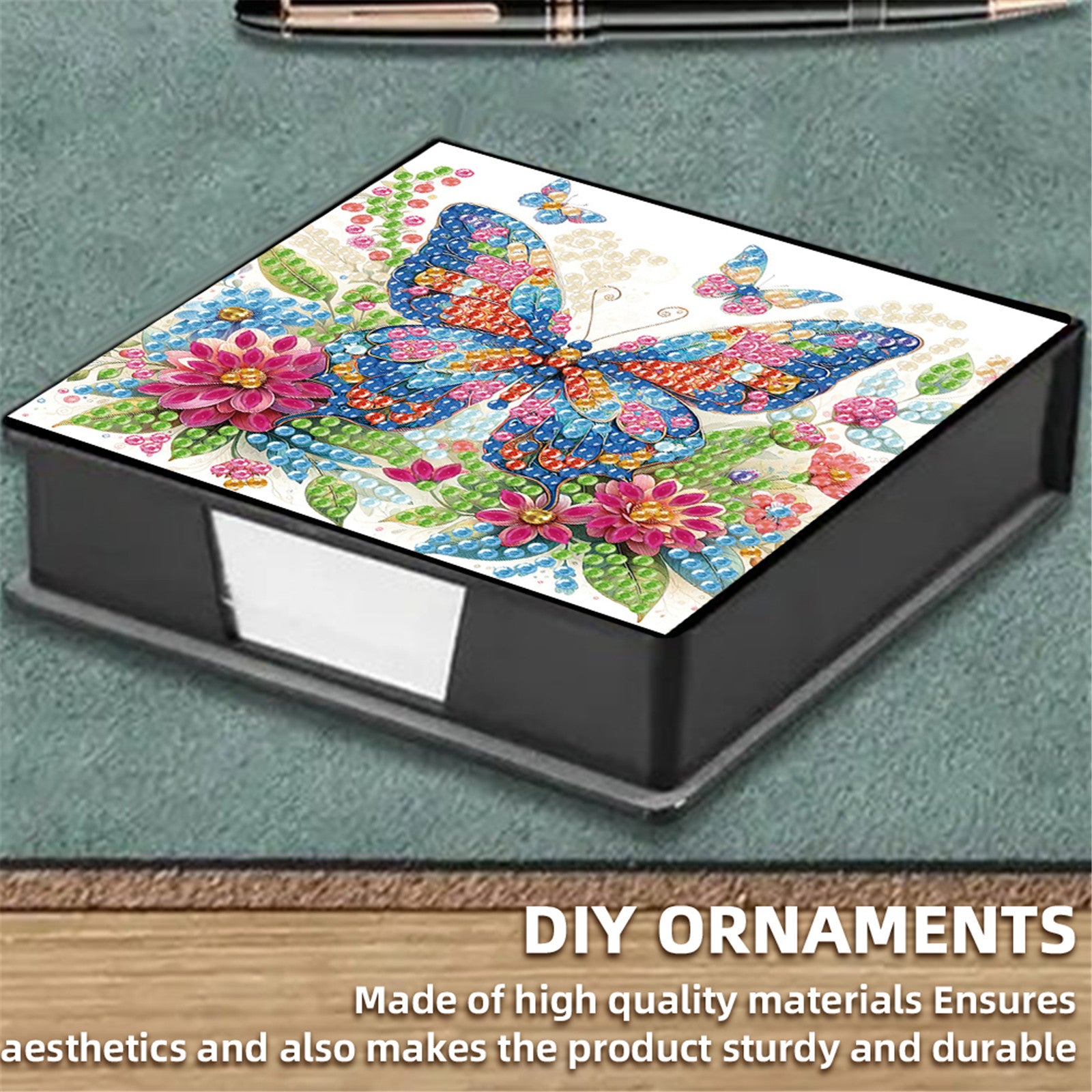 5D Butterfly DIY PU Diamond Painting Notecard Box with 160 Sheets Paper Holder