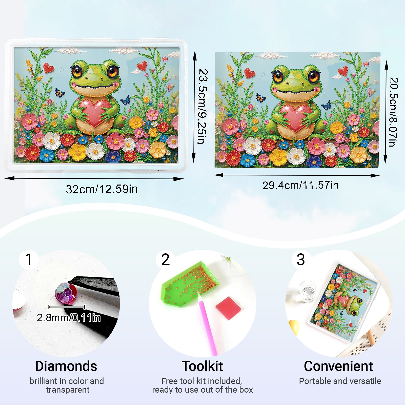 1. Open the packaging and check if all the diamond painting tools are included;