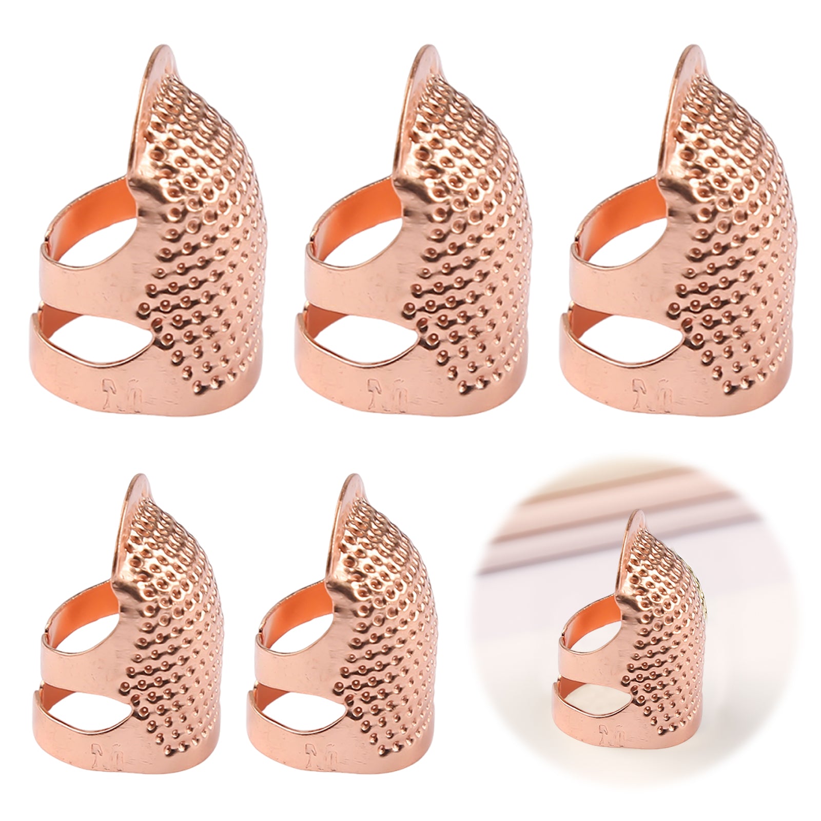 5Pcs Cross-Stitch Tools Retro Adjustable Thimble Hand Sewing Ring (Rose Gold M)