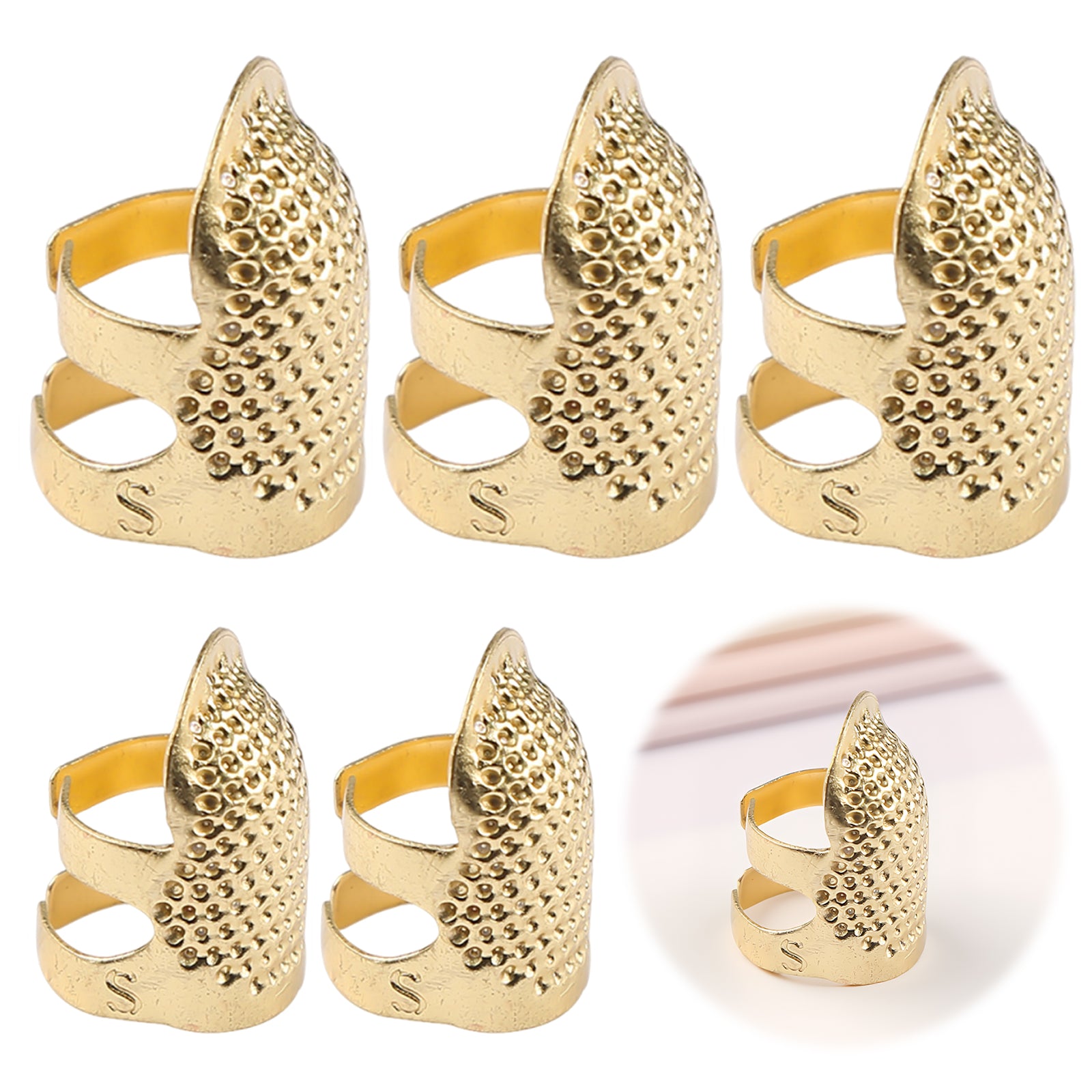 5Pcs Cross-Stitch Tools Retro Adjustable Thimble Hand Sewing Thimble (Gold S)