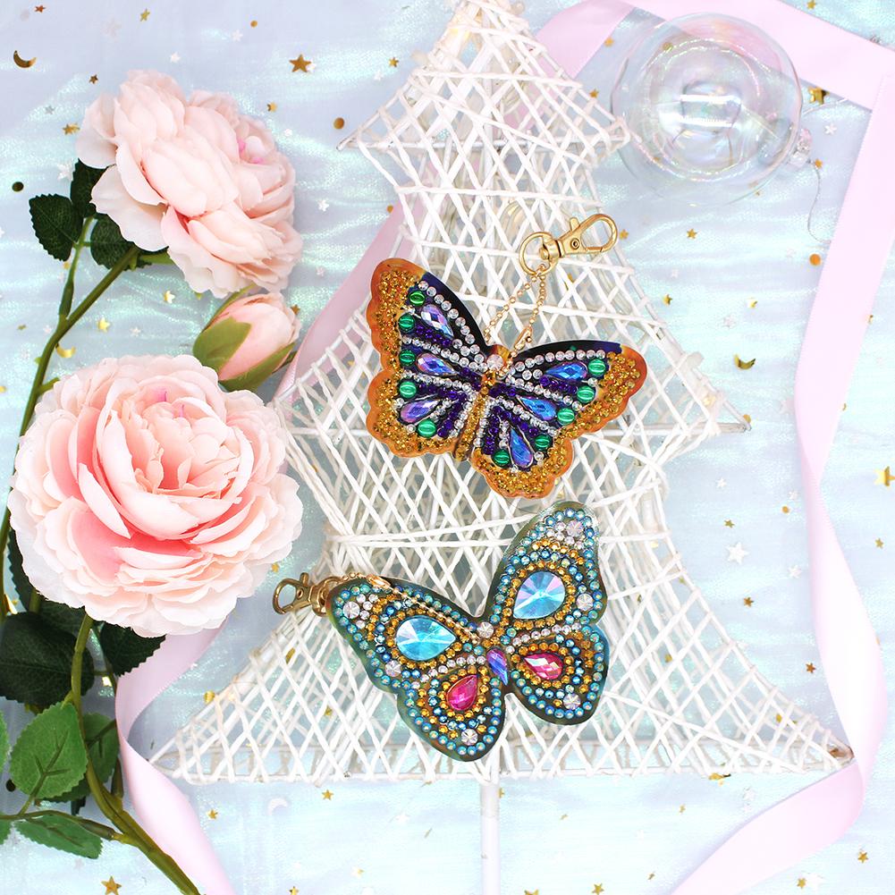 6pcs DIY Butterfly Full Drill Special Shaped Diamond Painting Keychain Gift
