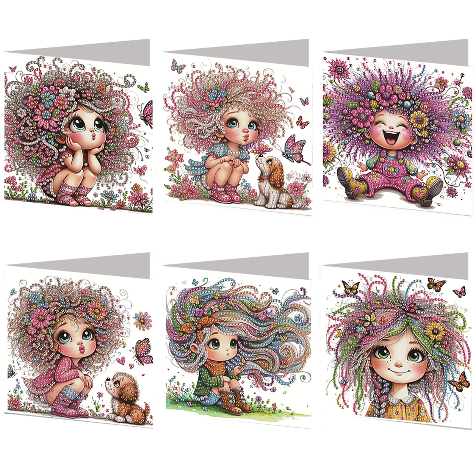 6pcs Girl DIY Diamond Art Greeting Cards Thank You Cards and Holiday Blessings