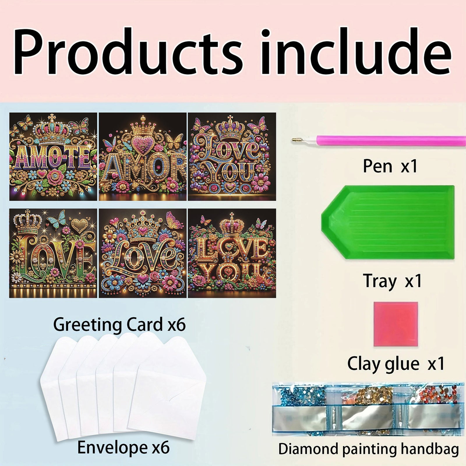 6pcs Word DIY Diamond Art Greeting Cards Thank You Cards and Holiday Blessings