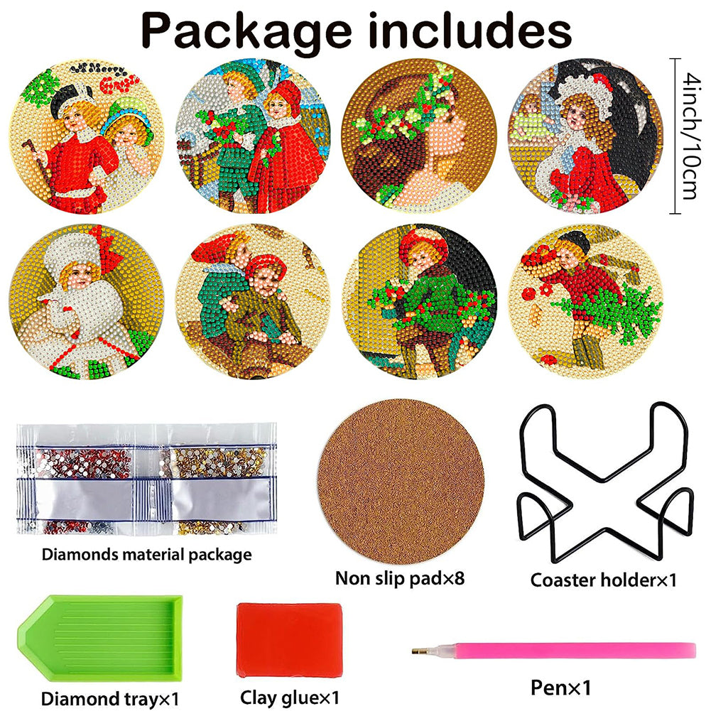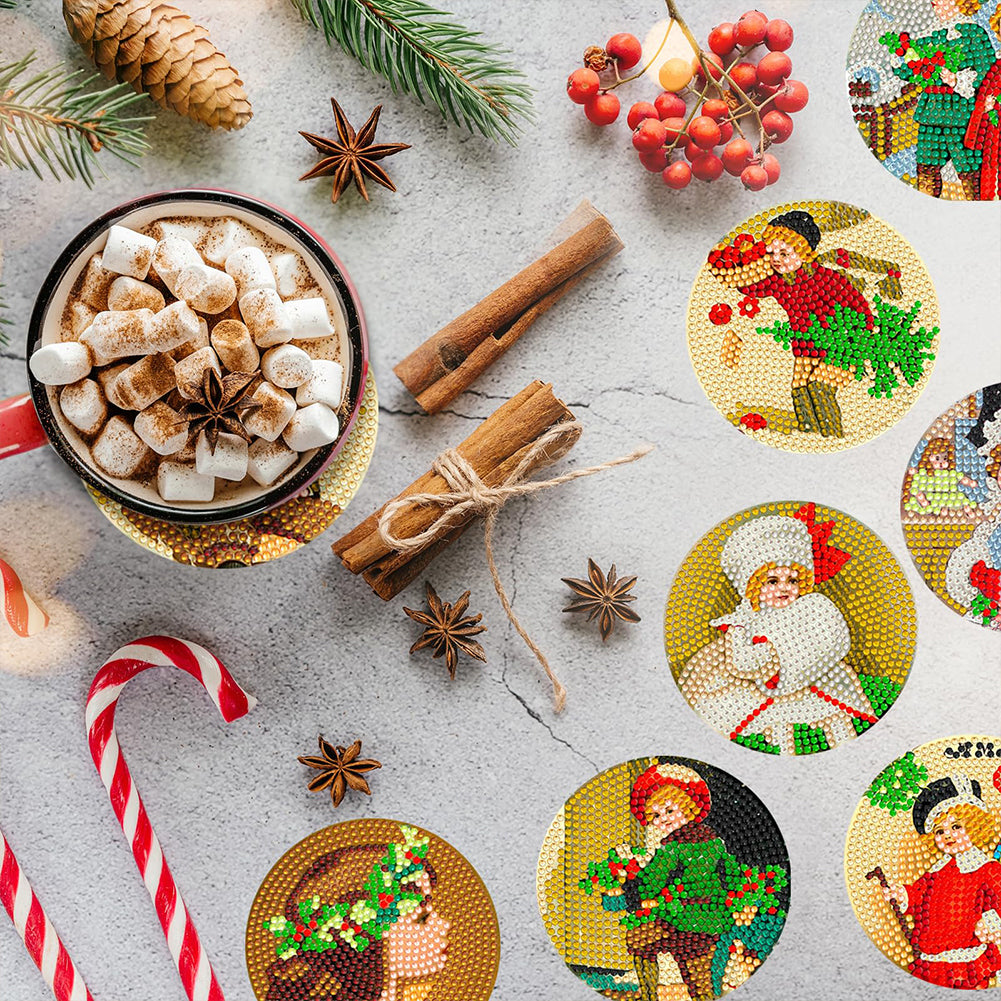 8 PCS Acrylic Diamond Painting Art Coaster Kit with Holder (Retro Childrens Day)