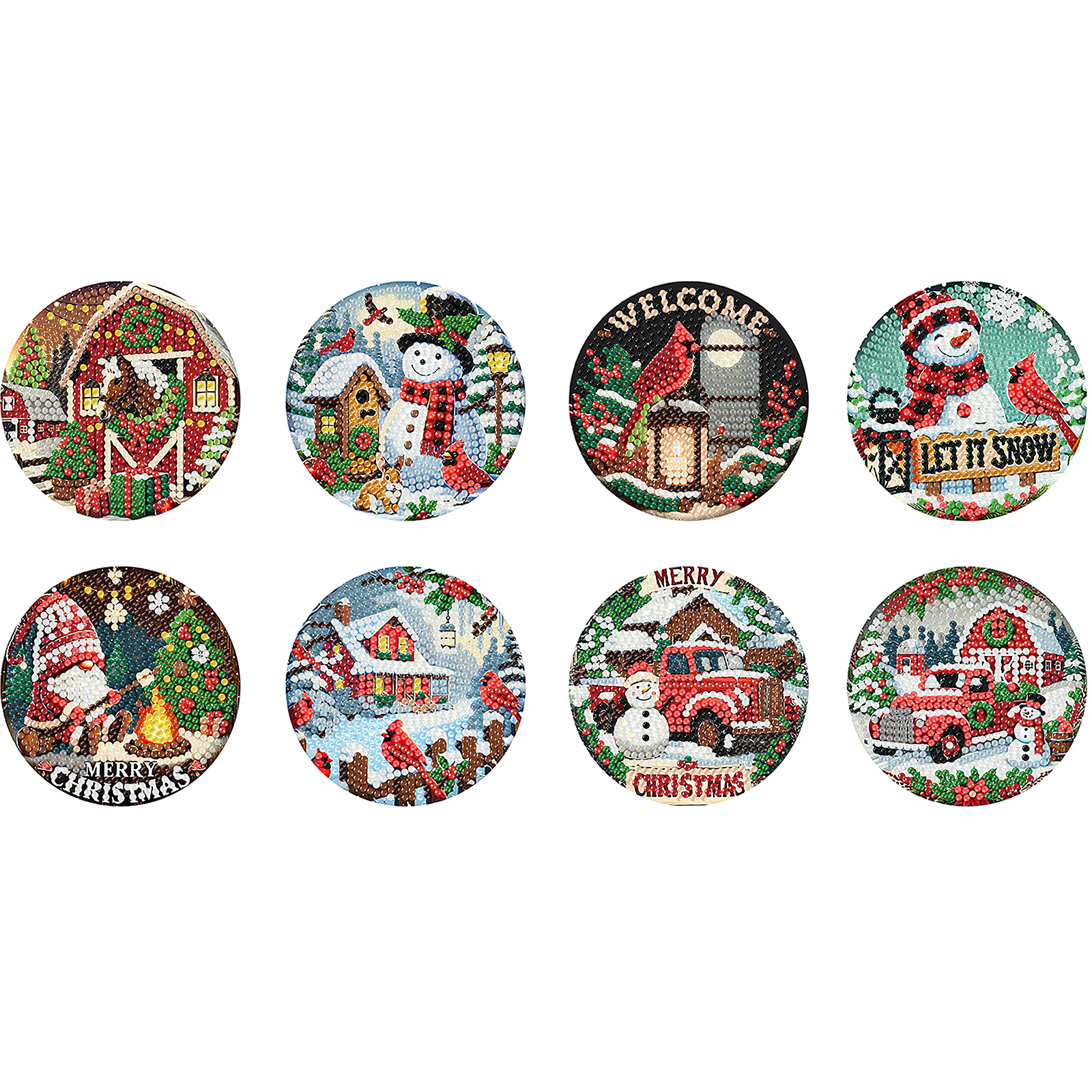 8pc Christmas Wooden DIY Coaster Diamond Art Kits with Holder No-Slip Home Decor