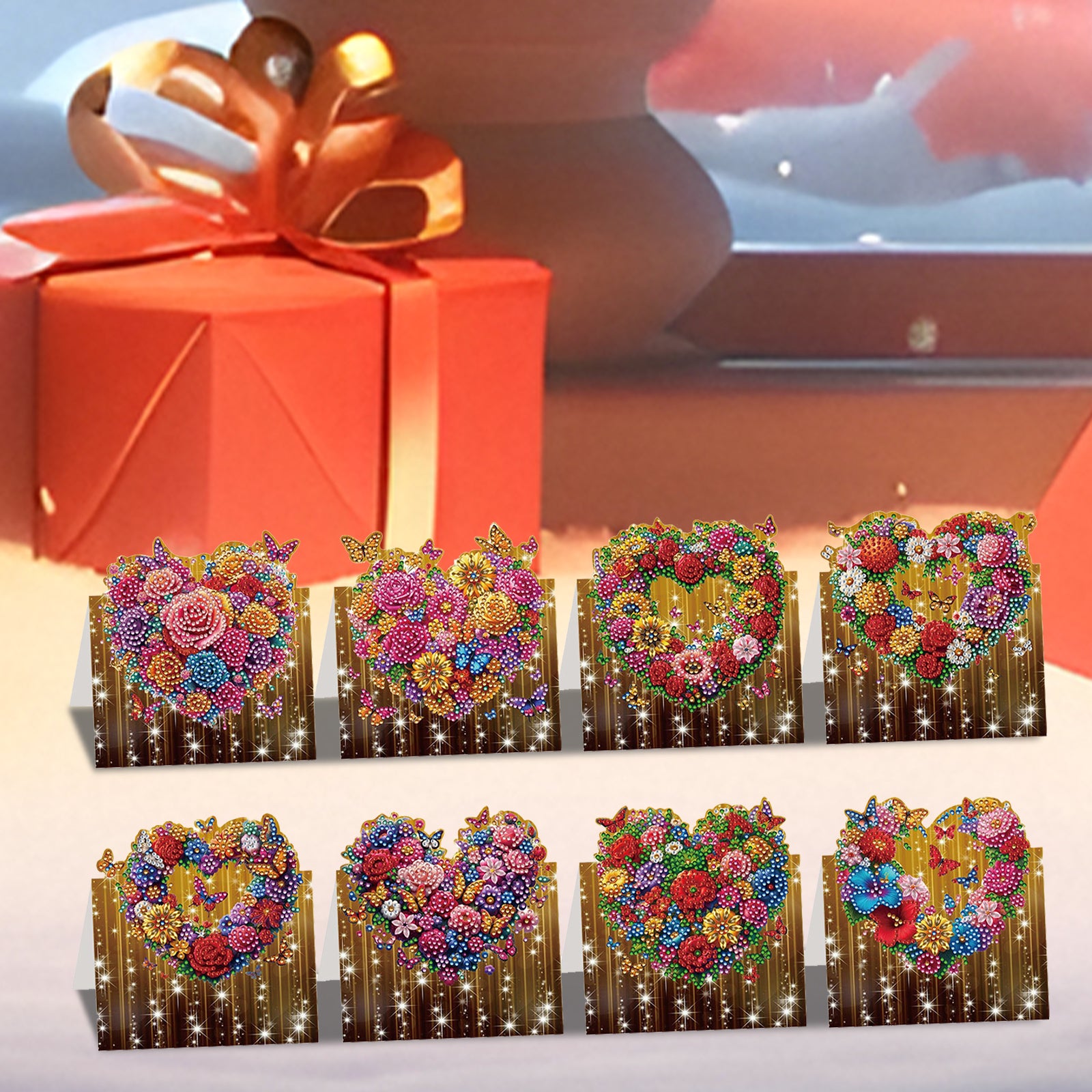 8PCS DIY Diamond Art Greeting Cards Xmas Congratulations Cards Gifts (Heart)