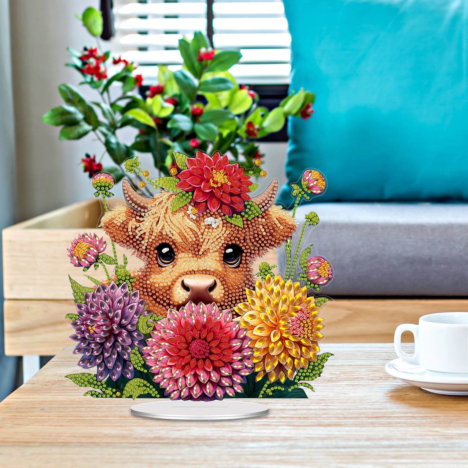 Acrylic 2D Flat cow and Flower DIY Table Top Diamond Painting Ornament Kits