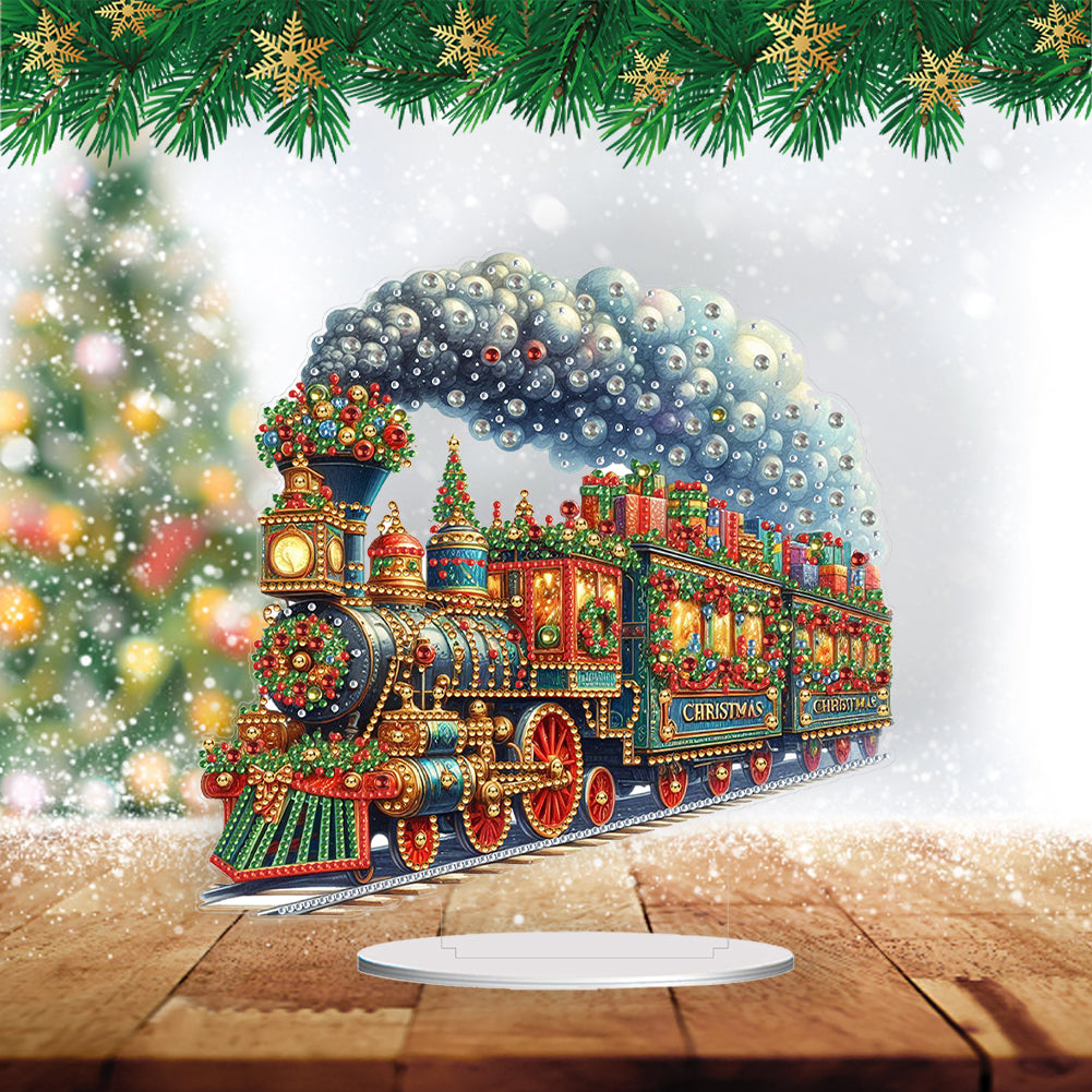 Acrylic Special Shape Christmas Train Diamond Painting Desktop Ornaments