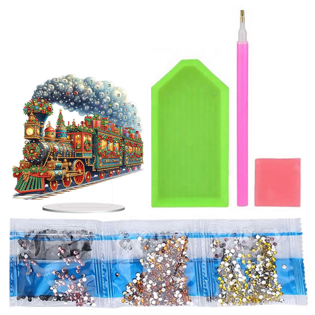 Acrylic Special Shape Christmas Train Diamond Painting Tabletop Ornaments Kit Rhinestones Desktop Ornaments Bedroom Table Decor