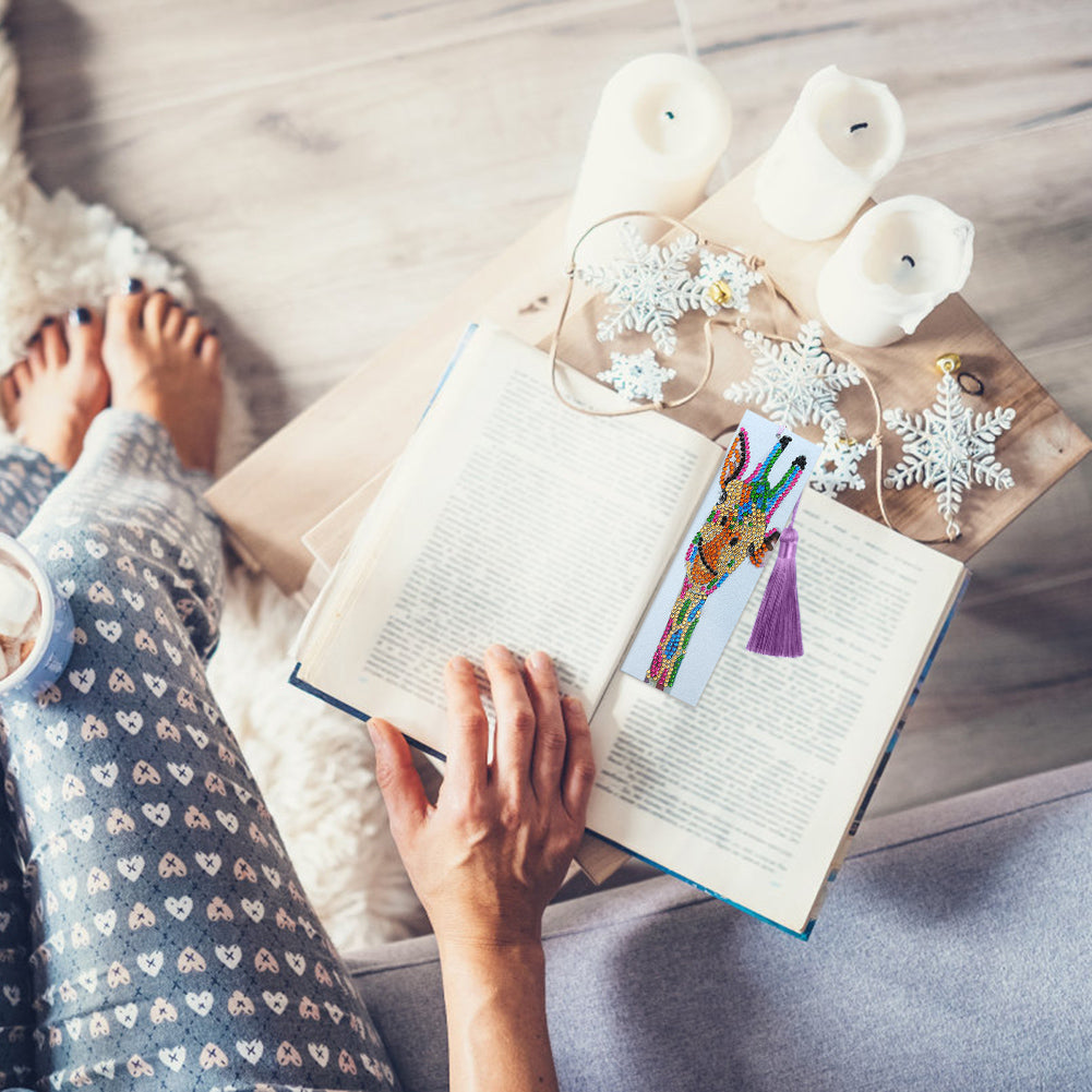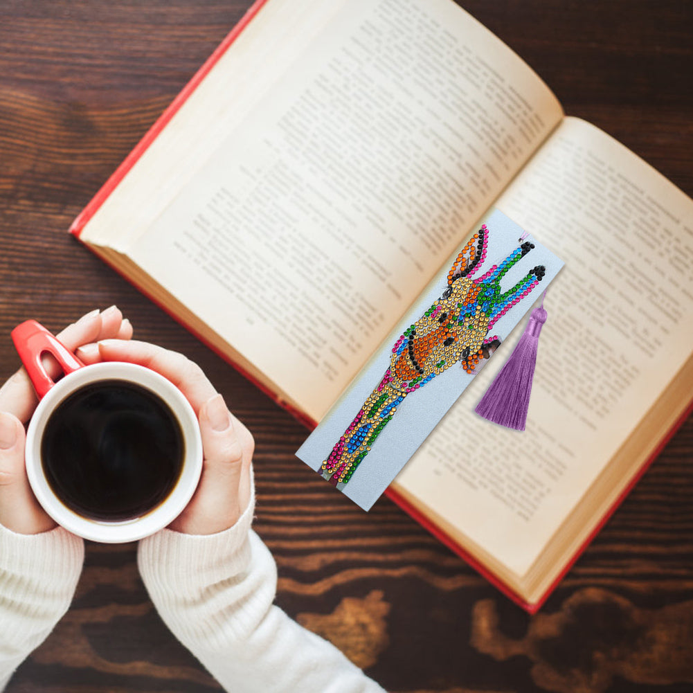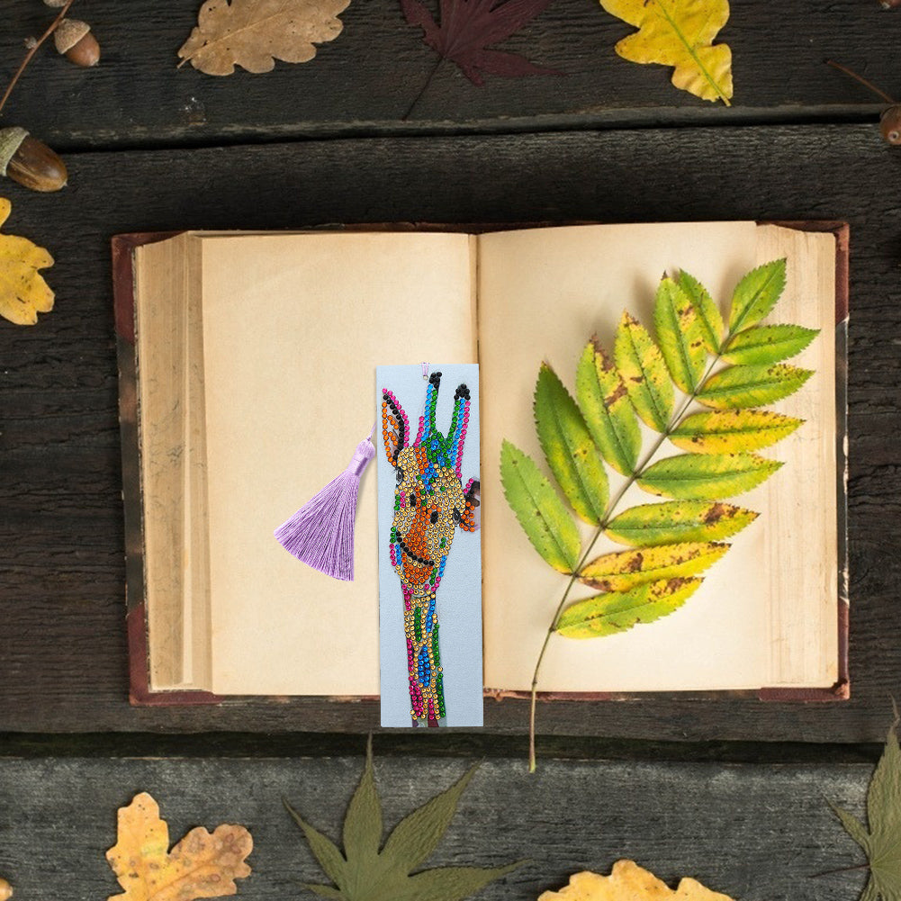 DIY Special Shape Diamond Painting Leather Tassel Bookmark Giraffe Logo