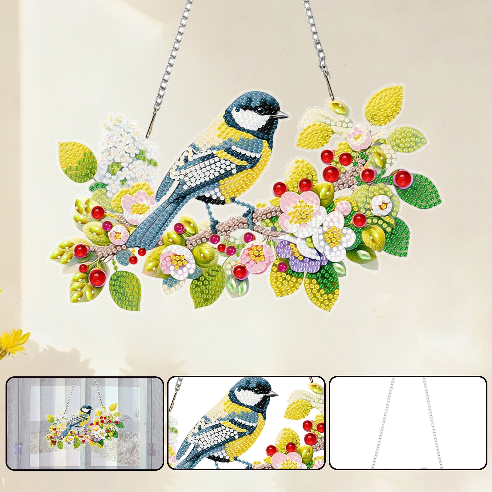 Birds 2D Flat DIY Acrylic Diamond Painting Kits Window Hanging for Home Decor