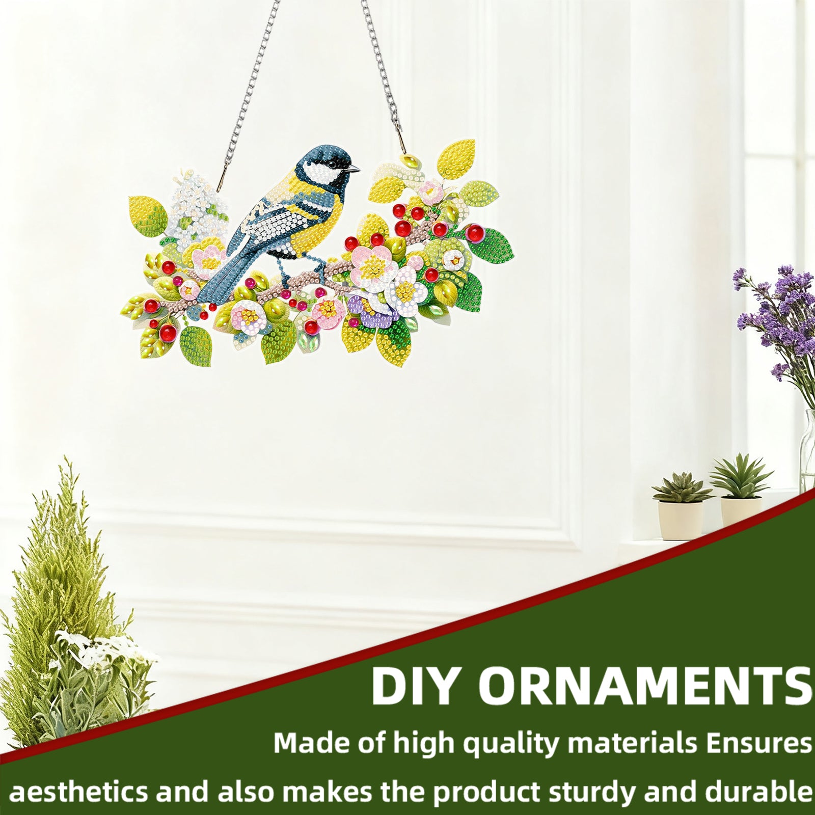 This project is a DIY diamond painting wall hanging artwork. After completion, you can hang it in your living room, bedroom, window, balcony, or anywhere else to enjoy its beauty and share with family or friends!