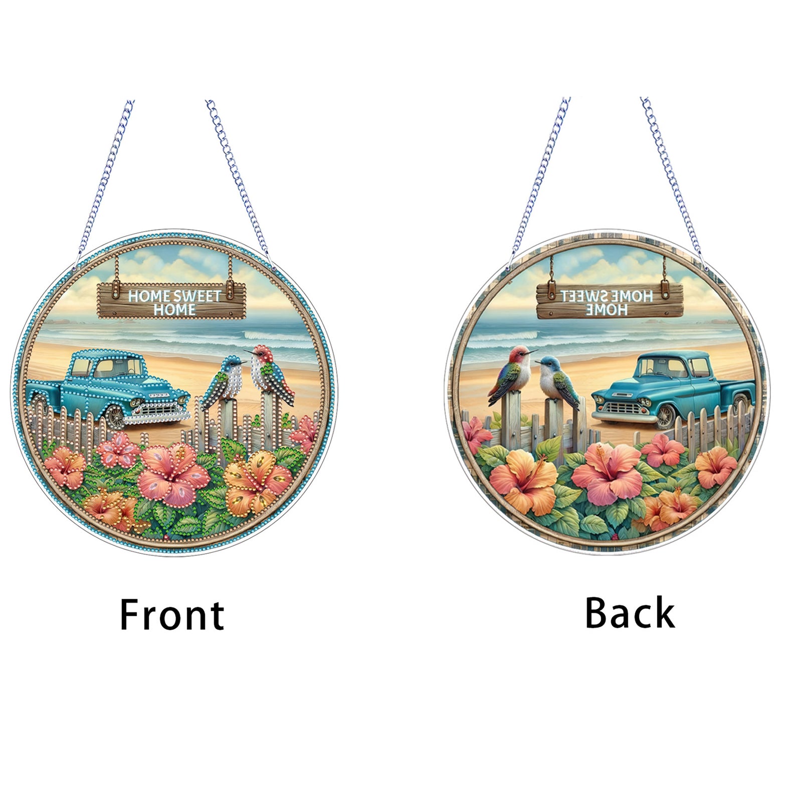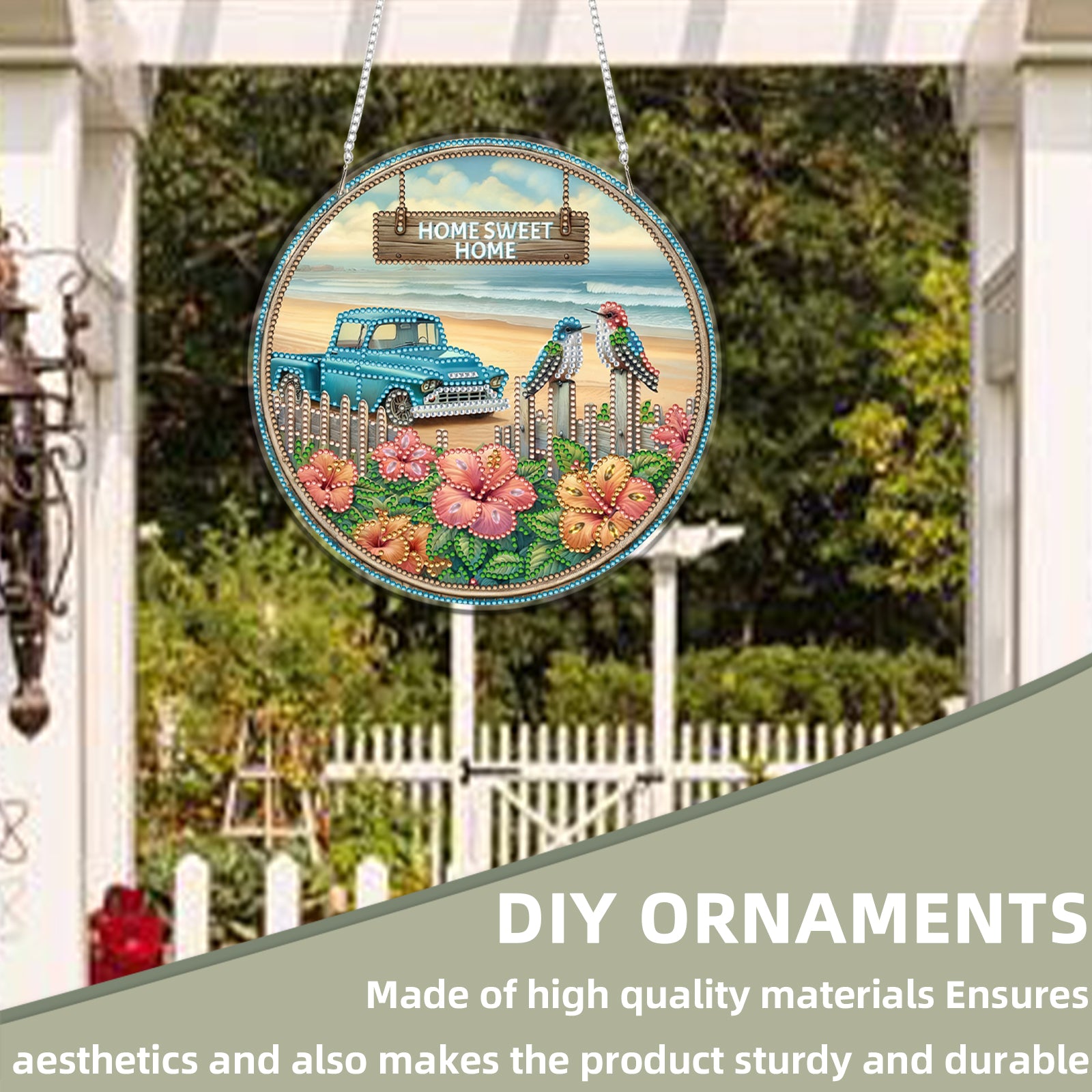 Car 2D Flat DIY Acrylic Diamond Art Pendant Craft Kit for Home Wall Decoration