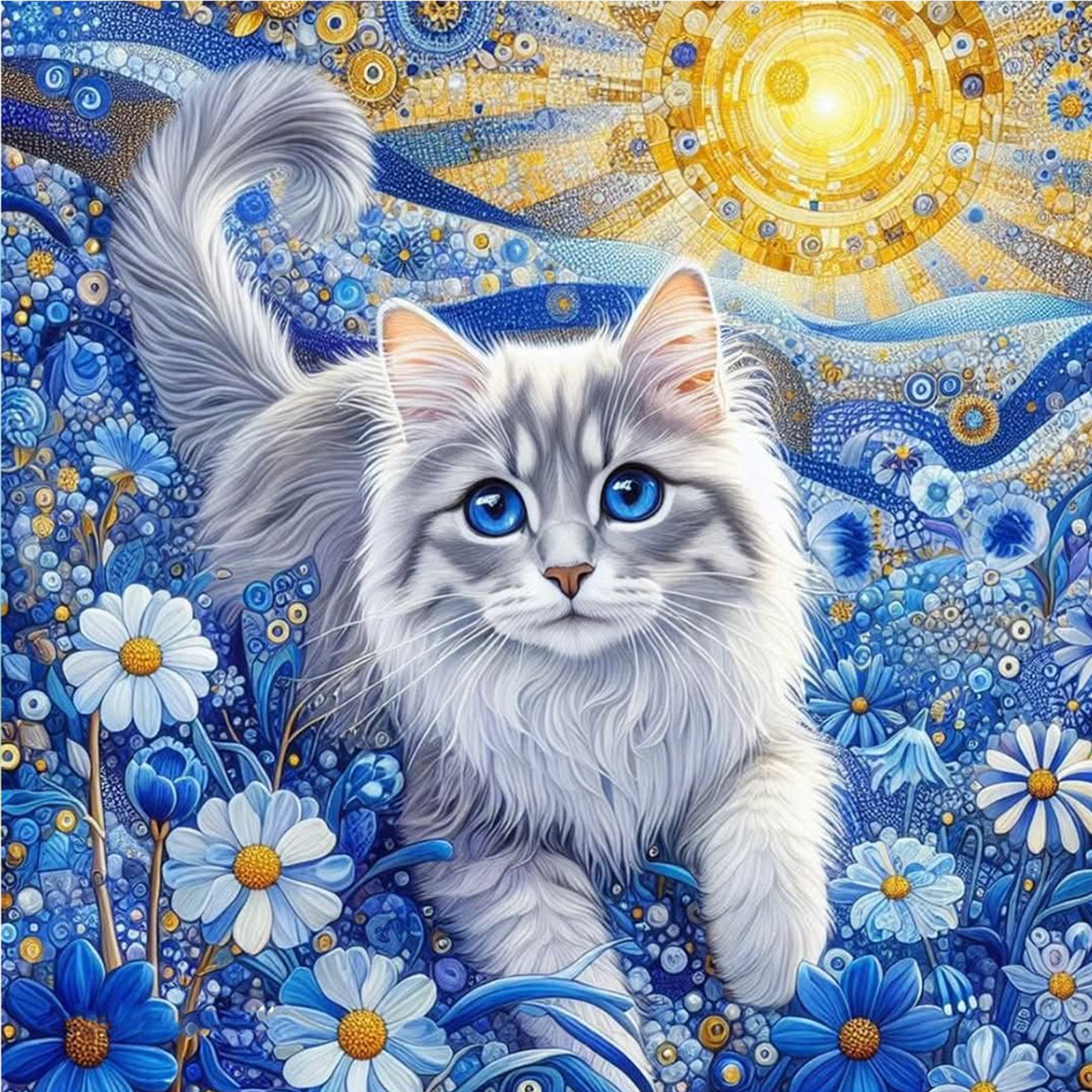 Cat And Flowers - Full Round Drill Diamond Painting 30*30CM